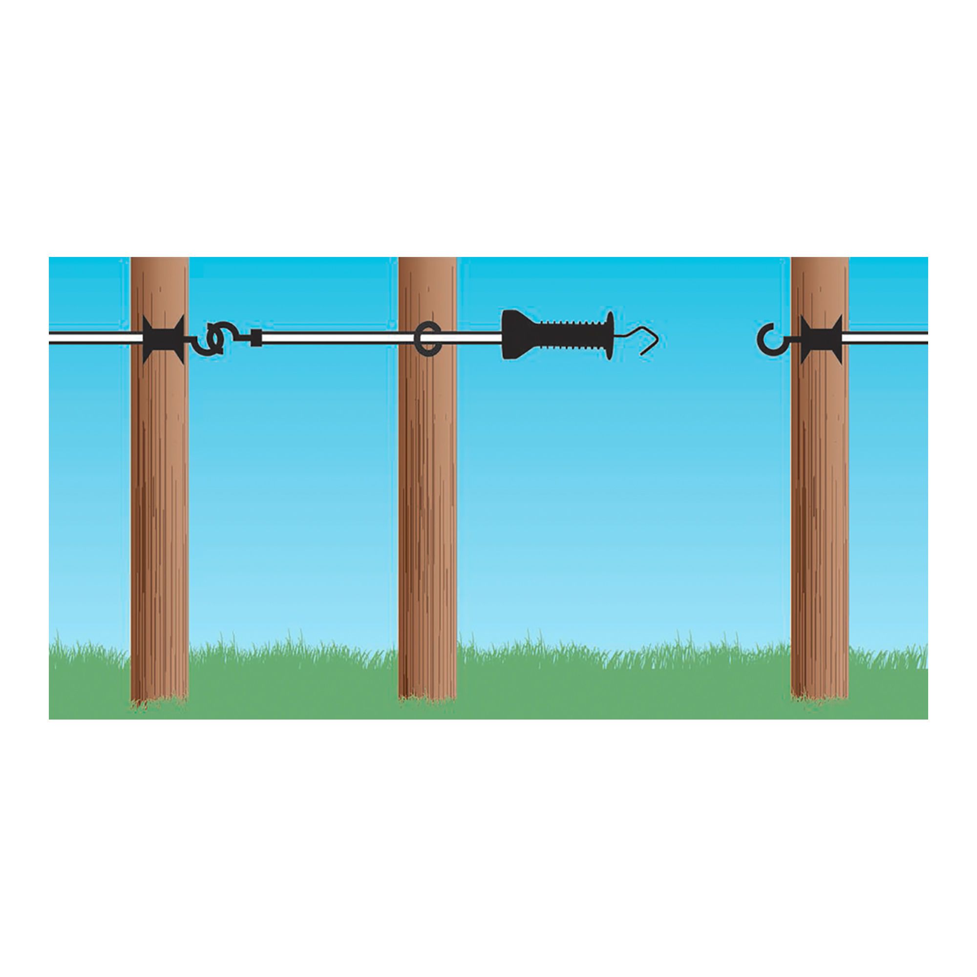 ● Includes an tensile electric fencing rope, with stainless steel hook and 4 conductors, a sturdy gate handle, a ring insulator and a double anchor insulator