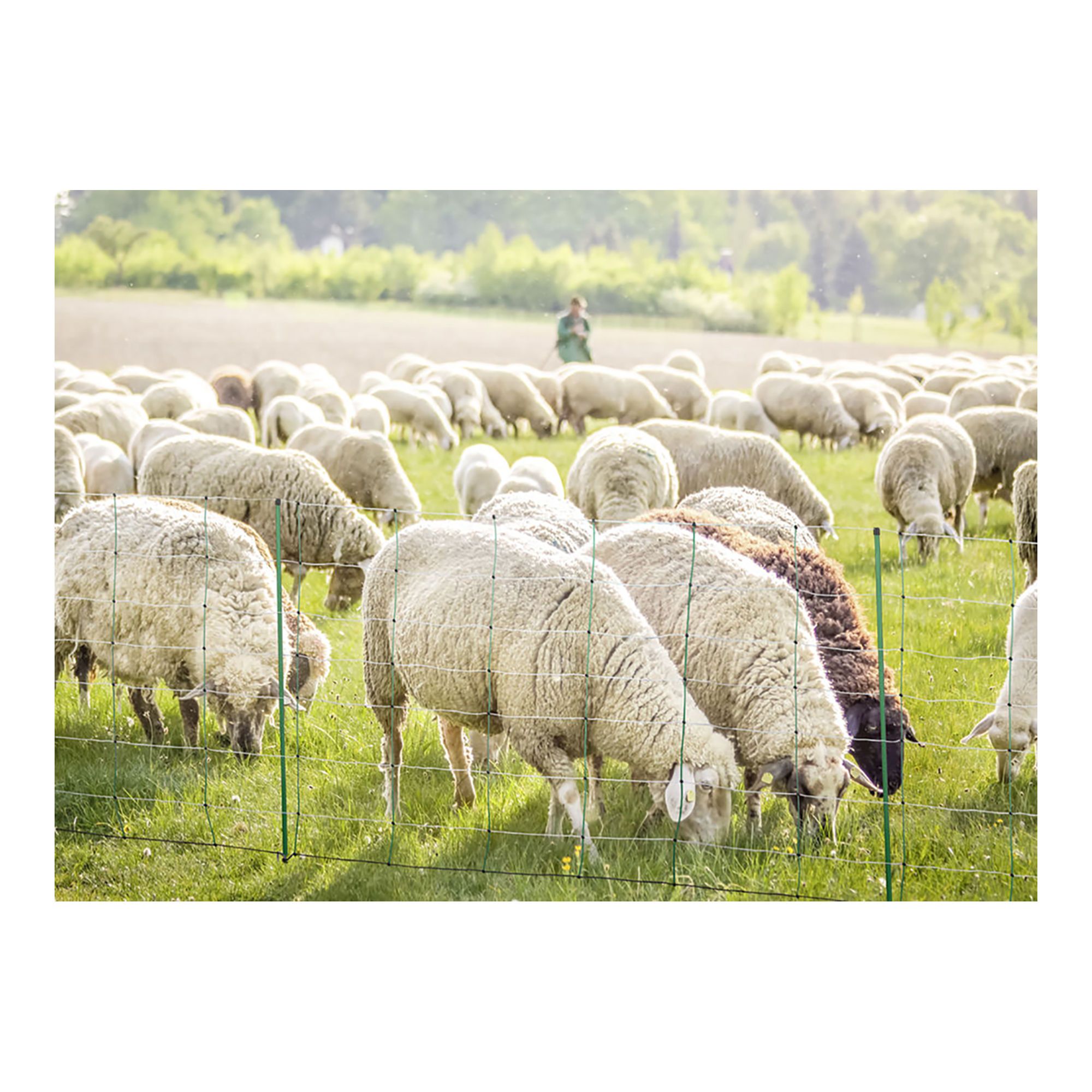 The new TopLine Plus Net, 50m, 108cm has been developed based on many years experience and our TitanNet Sheep Netting and is especia lly suitable for uneven ground. In the uprights, rigid plastic struts are used instead of the soft wire material. These are permanen tly linked at intervals of 30 m with the horizontal wires, ensuring a compact stature even on hilly and uneven terrain with a height 90 cm (7 horizontal wires) or 108 cm (8 horizontal wires), each available with single or double spike, length 50 m, 14 sturdy plast ic posts, strengthened, energized upper strand - increased conductivity thanks to the use of 5 stainless steel wires and a tin-plate d copper wire. We offer a 3-year warranty against UV damage for all plastic wires, improved footing and optimal terrain adaptation t hanks to stable vertical struts every 30 cm.