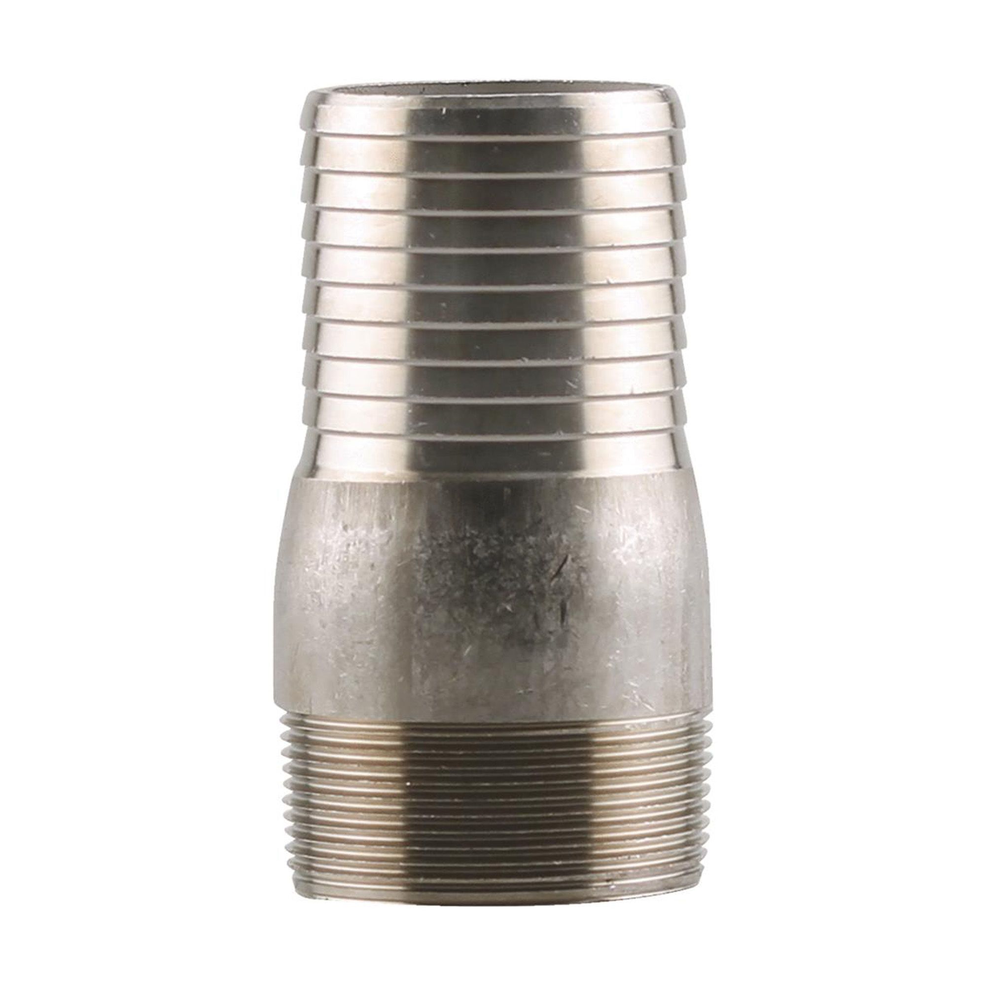 This stainless steel insertion adapter is used to connect a pipe to a female thread.