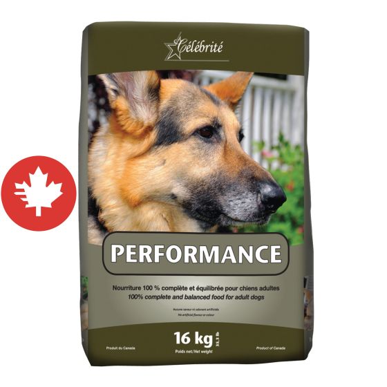 Your dog is active! Give it CELEBRITY PERFORMANCE food.
