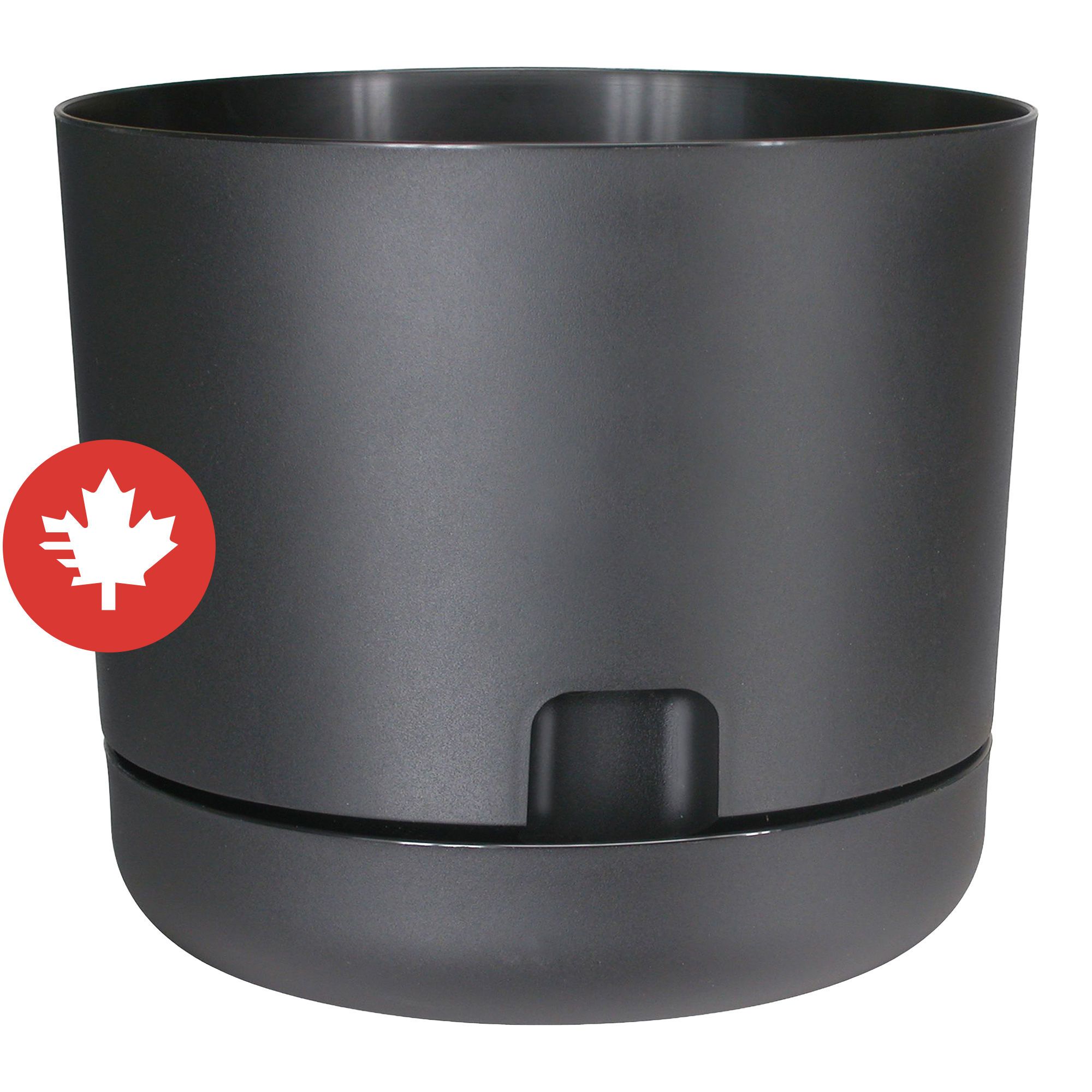 Show off your gardening skills with this timeless design self-watering planter that allows you to monitor the volume of water in the saucer through the open view port. Water can be added at soil level or through this view port resulting in the perfect balance of water, air, and soil to ensure fast growth and healthy plants. With a mat finish, this planter is manufactured in Canada using recyclable, UV treated raw materials which are food safe. It can be placed either indoors or outdoors and it will allow your plants to grow to their max.