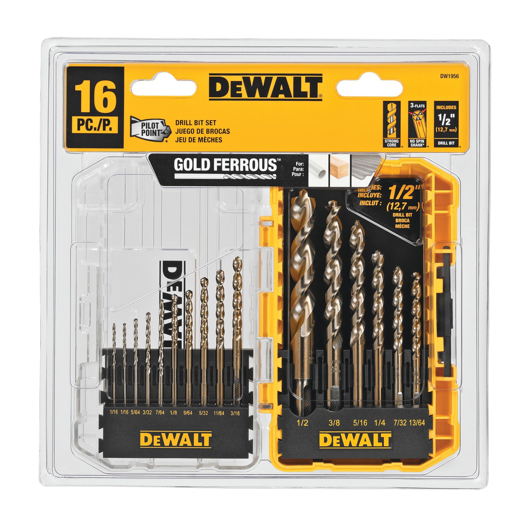 IMPACT READY titanium drill bit set of 14 pieces with exclusive PILOT POINT tip deliver speed and clear, burr-free holes.
