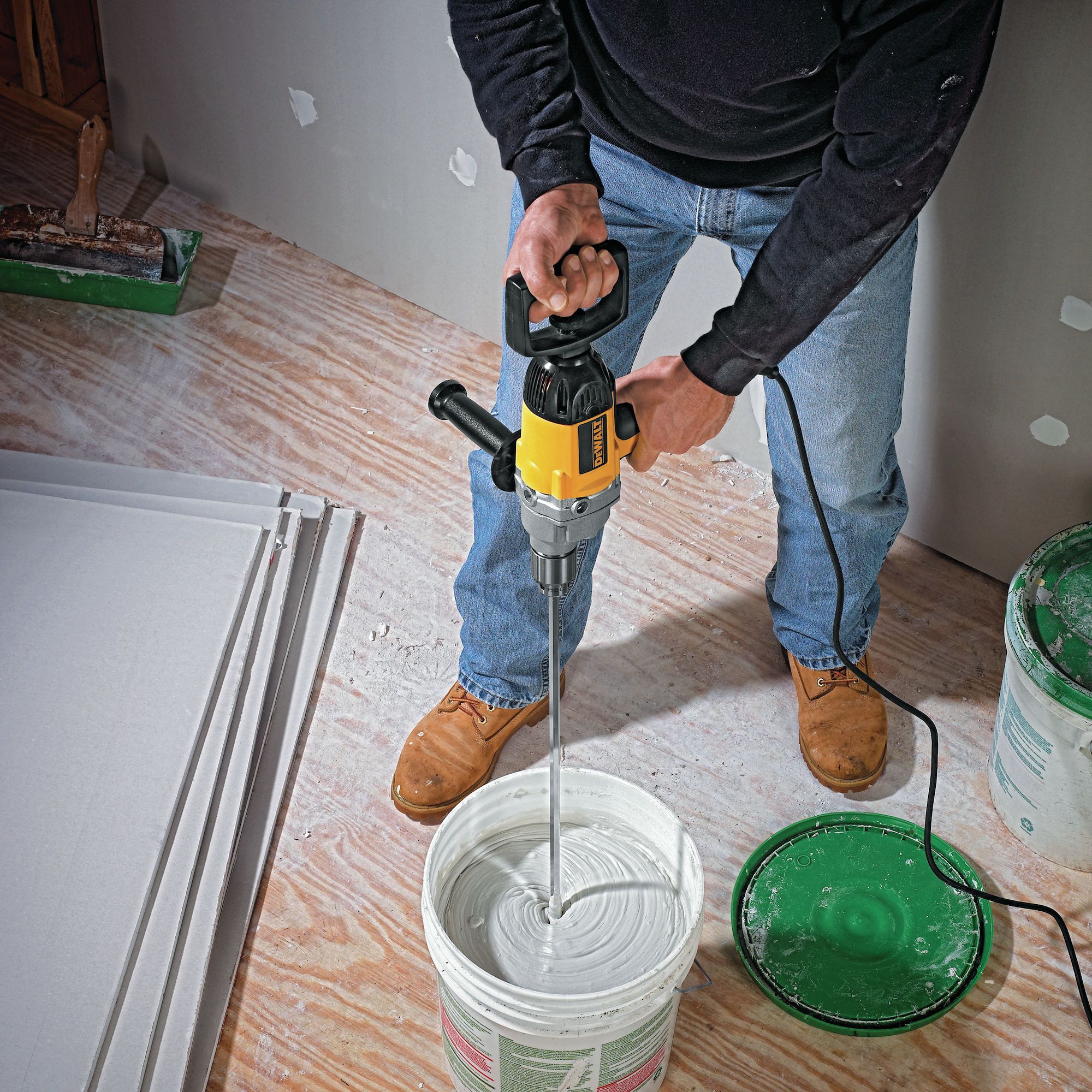 This spade handle drill features variable speed reversible switch to reduce air bubbles when mixing mud. Its 120 V motor delivers 0–550 RPM to increase torque for drilling and mud mixing. It is lightweight and is equipped with a comfortable grip to minimize downtime.