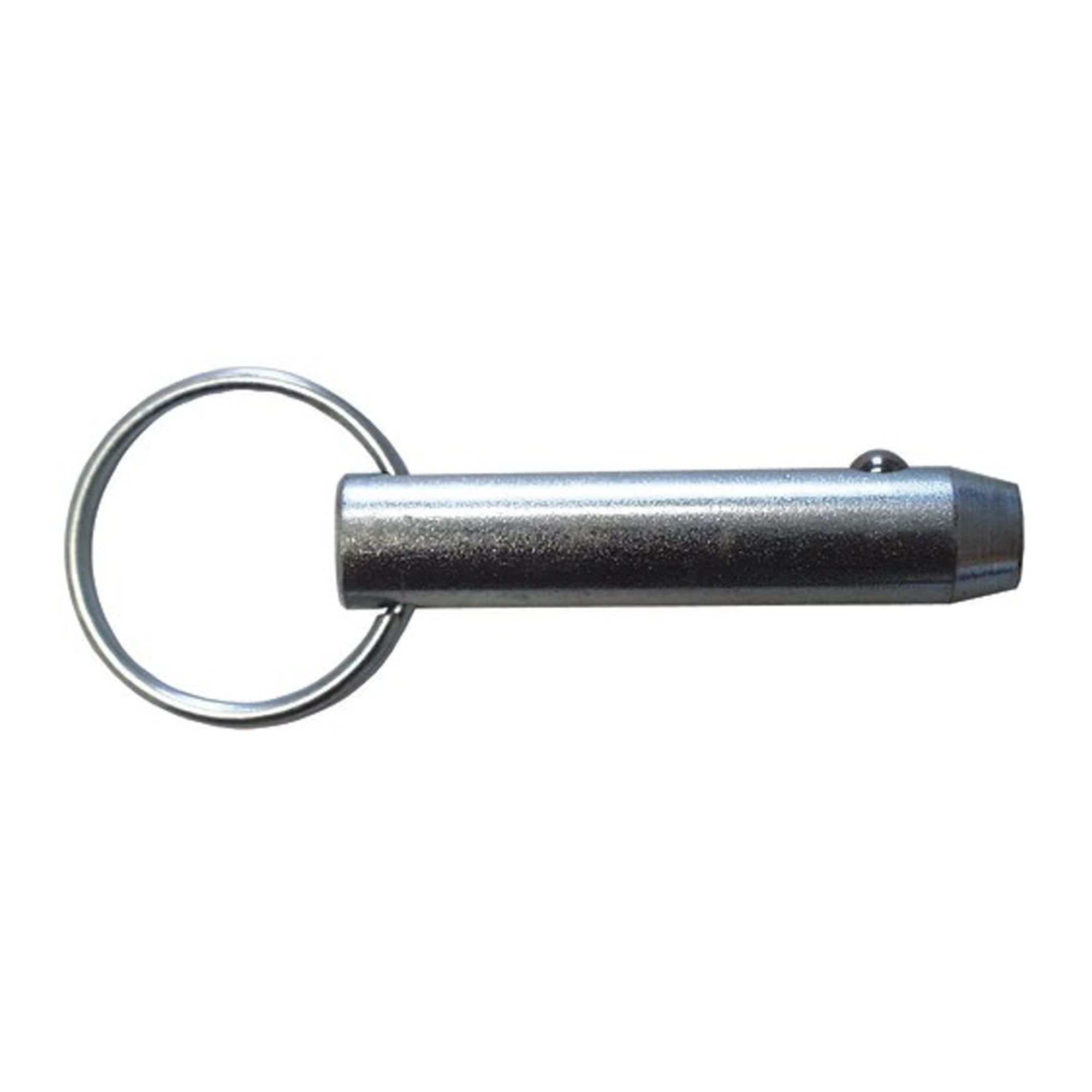 This quick release pin is made of stainless steel, which lasts over time and is weather resistant. To ensure safety, a spring-loaded ball at the end of the pin holds it in place.