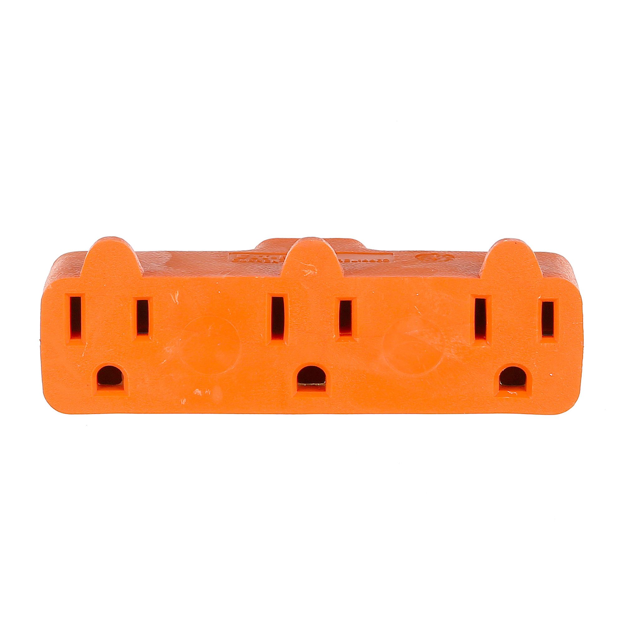 This triple adapter converts a single outlet into three, making it ideal for powering multiple devices without the need for an extension cord. Equipped with grounding and secure polarization, it ensures a safe and reliable connection, suitable for both home and professional use. Designed to handle 15A at 125 V, it’s perfect for workshops, garages, and work areas requiring multiple power sources. Its sturdy construction and bright orange colour enhance visibility, reducing the risk of forgetfulness or accidents.