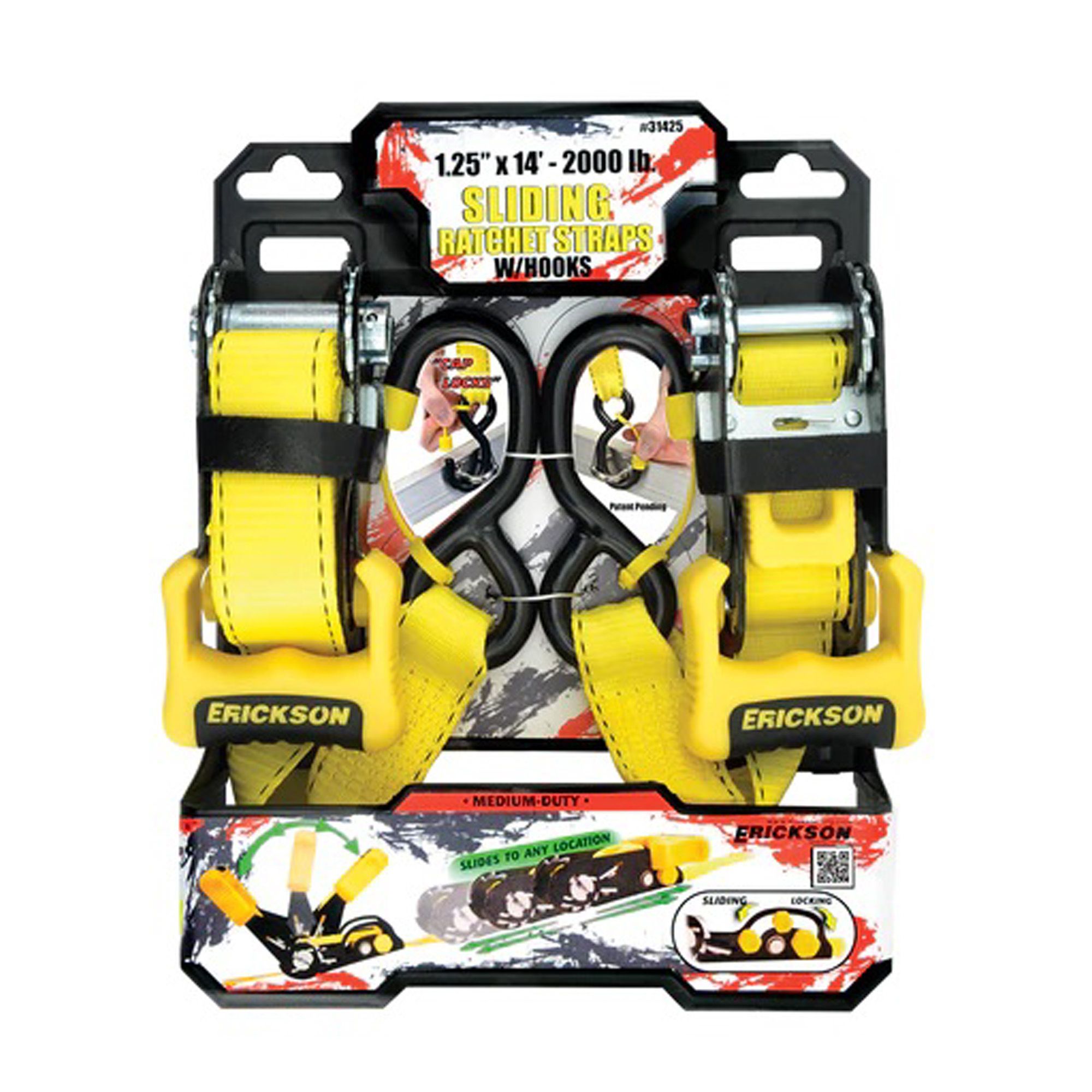 Sliding ratchet Straps - 1.25" x 14' - Pack of 2