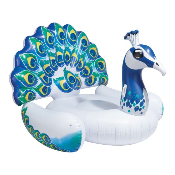 The pool takes a playful turn with this giant peacock.