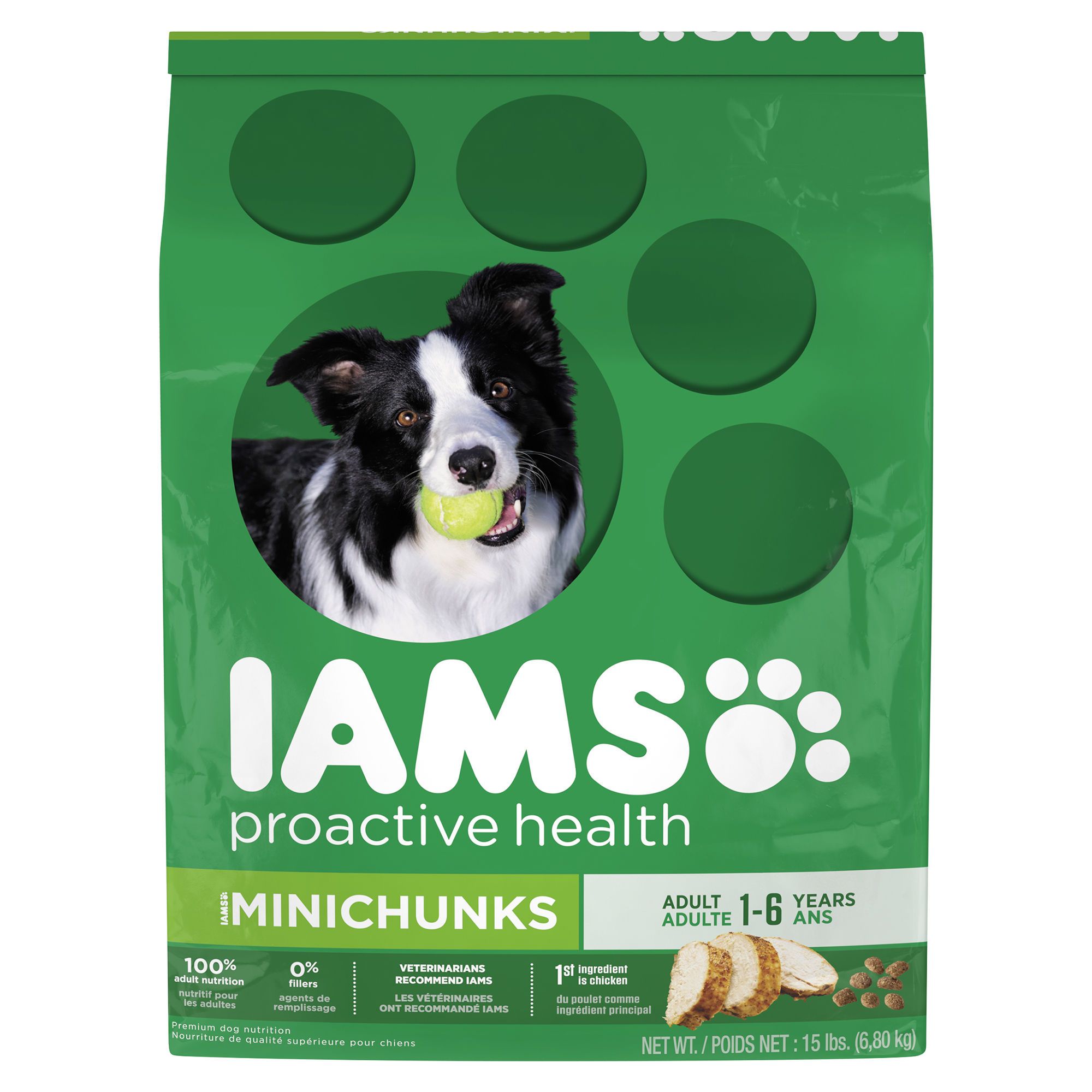 These delicious IAMS dog food minichunks provide your active dog with essential nutrients and prebiotics for a healthy body.