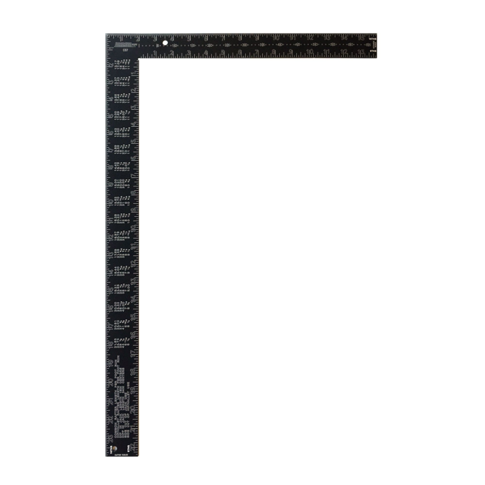 Aluminum Rafter Square - 16" x 24" Permanent 1/8" stamped graduations include rafter square layout with tables and Essex board measure.