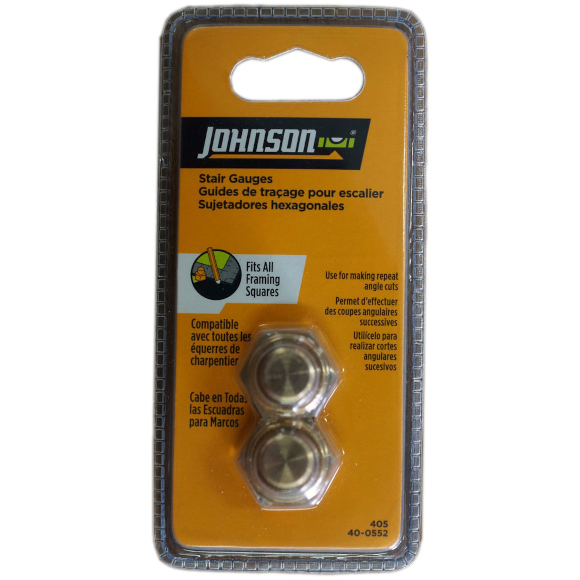Position these stair gauges on a square to make repeated angle cuts.