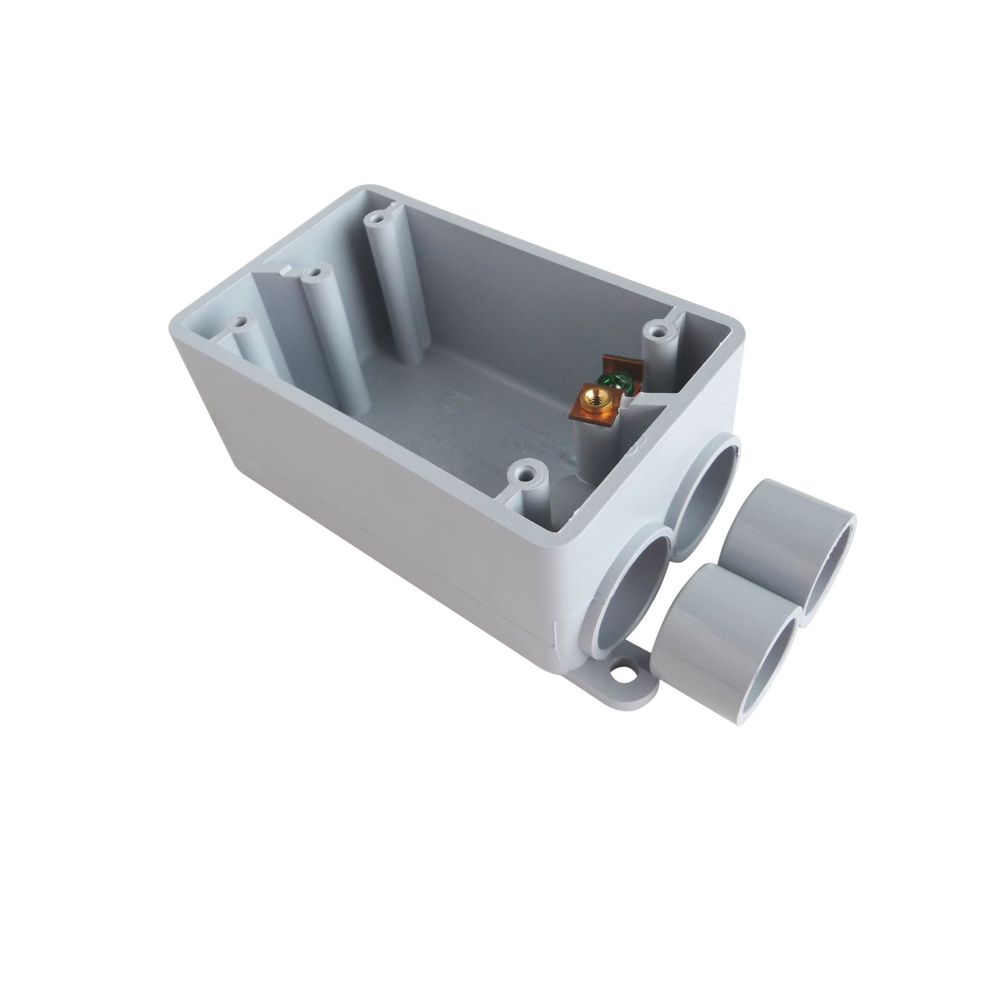 FSS series single gang box with 1/2 in and 3/4 in reducer bushings.