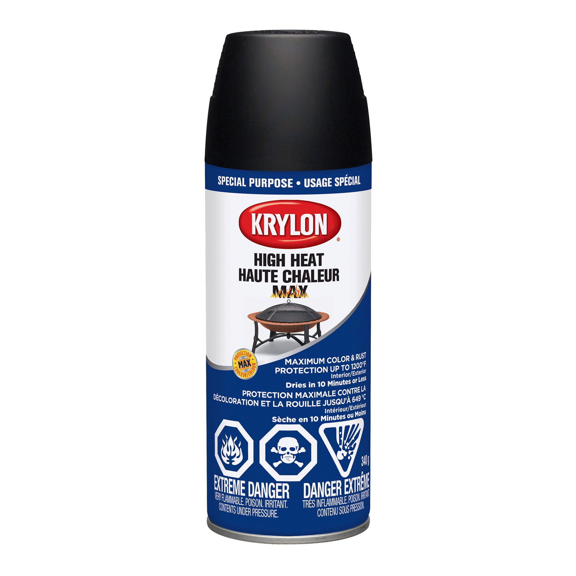 Formulated to withstand high temperatures, this spray paint offers lasting protection for surfaces exposed to intense heat. It resists up to 600°F (316 °C), while providing excellent durability and reliable rust protection. Suitable for barbecues, fire pits, or heated metal parts, it can be used indoors or outdoors. Easy to apply, it dries quickly and delivers a smooth, even finish—free of blistering or cracking—even after repeated heat cycles.