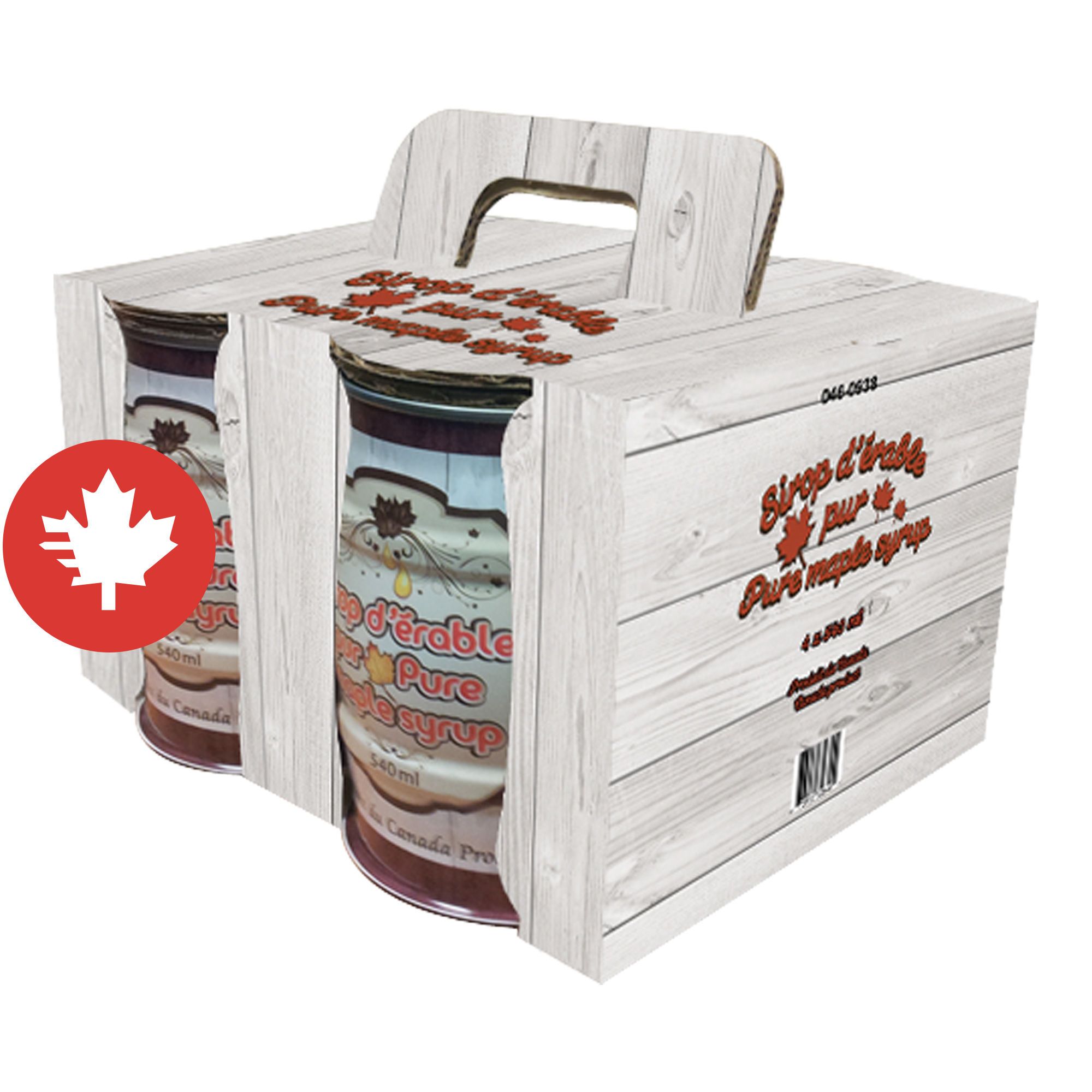 Lithographed Box For Keg Shape Maple Syrup Cans - With handle - 4 x 540 ml/Pkg
