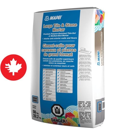 This thin or medium bed large format tile adhesive is ideal for indoor and outdoor installations. Polymer-enriched for high performance, it offers excellent adhesion and easy application thanks to Easy Glide technology. Its non-sag and non-slip formula makes it perfect for heavy tiles and stones on walls, floors, and countertops. It can be applied in a thin or medium layer up to 19 mm thick.
