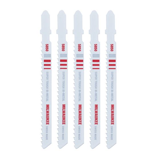 Get professional-grade performance and longer blade life with the Milwaukee 4 in. 8 TPI bi-metal jig saw blade - t-shank (5-Pack). These heavy-duty blades last longer than high-speed steel or carbon blades, combining the strength to cut metal with the durability to withstand impacts without breaking. With Milwaukee's attention to blade material, tooth shape and sharpness, the jig saw blades produce clean, fast cuts in aluminum and non-ferrous materials. The T-shank allows for quick installation. Use with Milwaukee jig saw models 6266-6, 6276-6, 6267-20, 6267-21 and other popular brands.