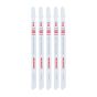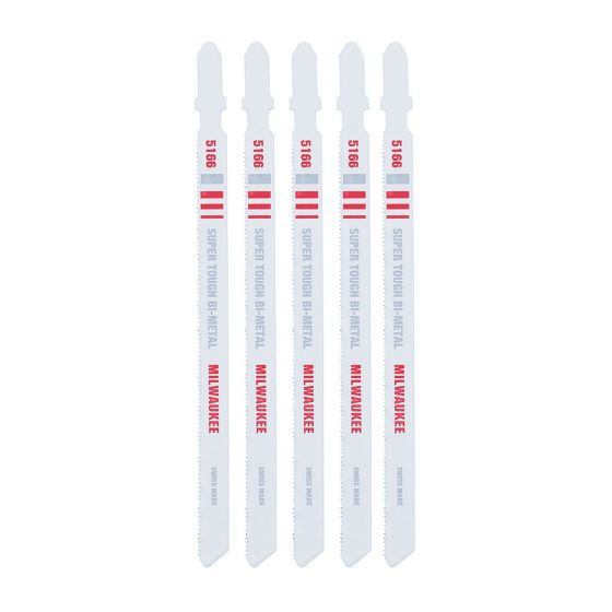 Get professional-grade performance and longer blade life with the Milwaukee 5-1/4 in. 24 TPI bi-metal jig saw blade - t-shank (5-Pack). These heavy-duty blades last longer than high-speed steel or carbon blades, combining the strength to cut metal with the durability to withstand impacts without breaking. With Milwaukee's attention to blade material, tooth shape and sharpness, the jig saw blades produce clean, fast cuts in metal under 1/8 in. thick. The T-shank allows for quick installation. Use with Milwaukee jig saw models 6266-6, 6276-6, 6267-20, 6267-21 and other popular brands.