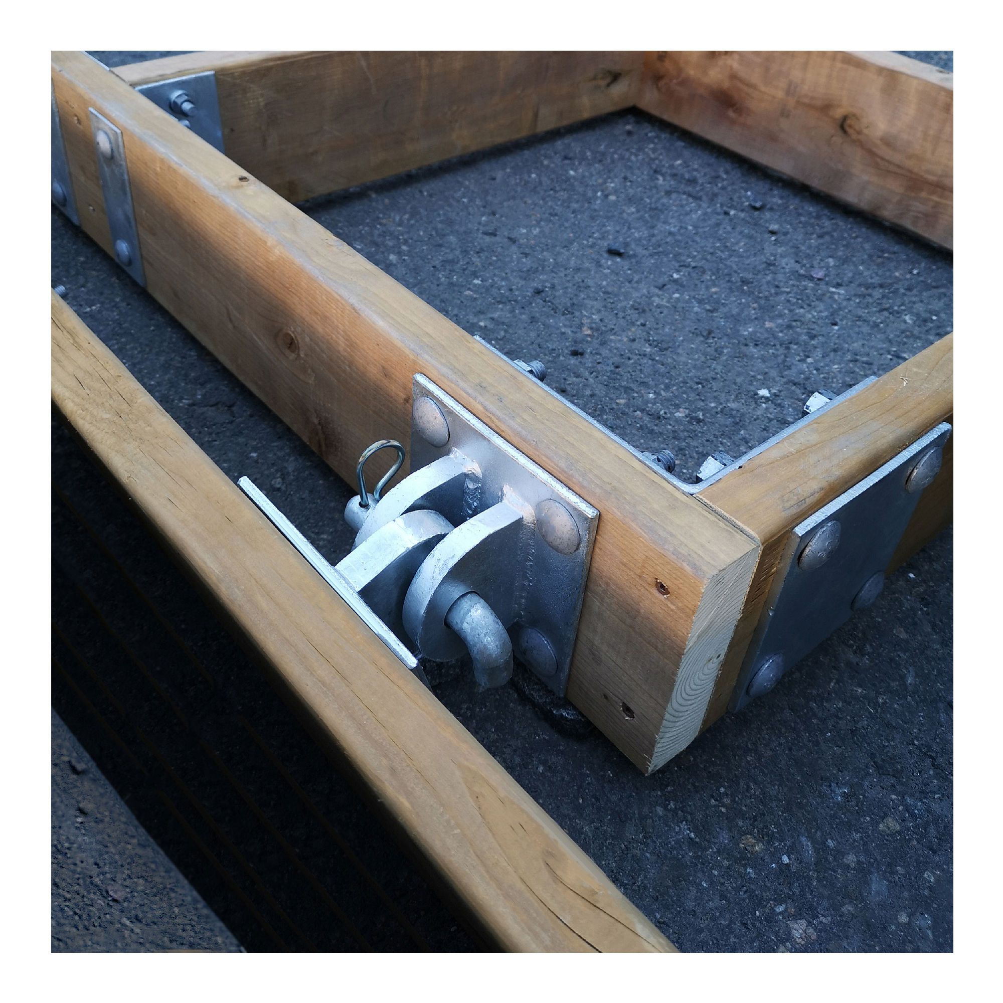 This galvanized steel hinge is designed to securely and durably connect two sections of a floating dock. Its 3/4" pin with safety clip ensures smooth articulation while limiting lateral movement. The 5" x 5" plates, made from 1/4" thick steel, are easy to install thanks to predrilled holes. Best used with 1/2" x 3" carriage bolts, this component pairs well with interior corners or reinforcement plates to form a consistent and reliable dock structure.