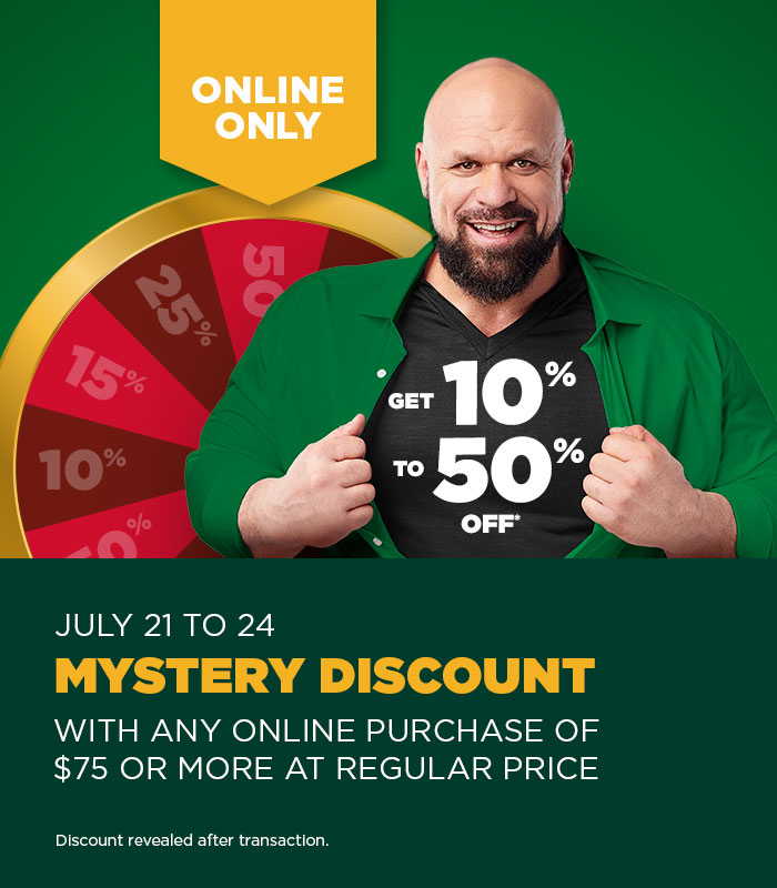 *Valid from December 14 to December 17, 2023, ONLINE ONLY at BMR.ca. With a purchase of $100 or more before tax on a single invoice (up to a maximum of $2,000), receive a discount between 10% and 50%. The discount will be randomly generated and applied to your cart. The discount will be revealed once the transaction is completed. Not eligible: Water heaters, certain building materials, maple sugaring and hay making products, products advertised in the flyer or products already discounted, layaways, special order items, pet products, gasoline, propane, purchases charged to an account, gift cards, in-store services such as installation, rental, delivery and cutting services. Only purchases paid by credit card or Paypal are eligible. Offer does not apply to previous purchases or layaways. This offer is not convertible into cash and cannot be combined with any other offers. While supplies last. Some products may not be available for online purchase. Not valid in stores.