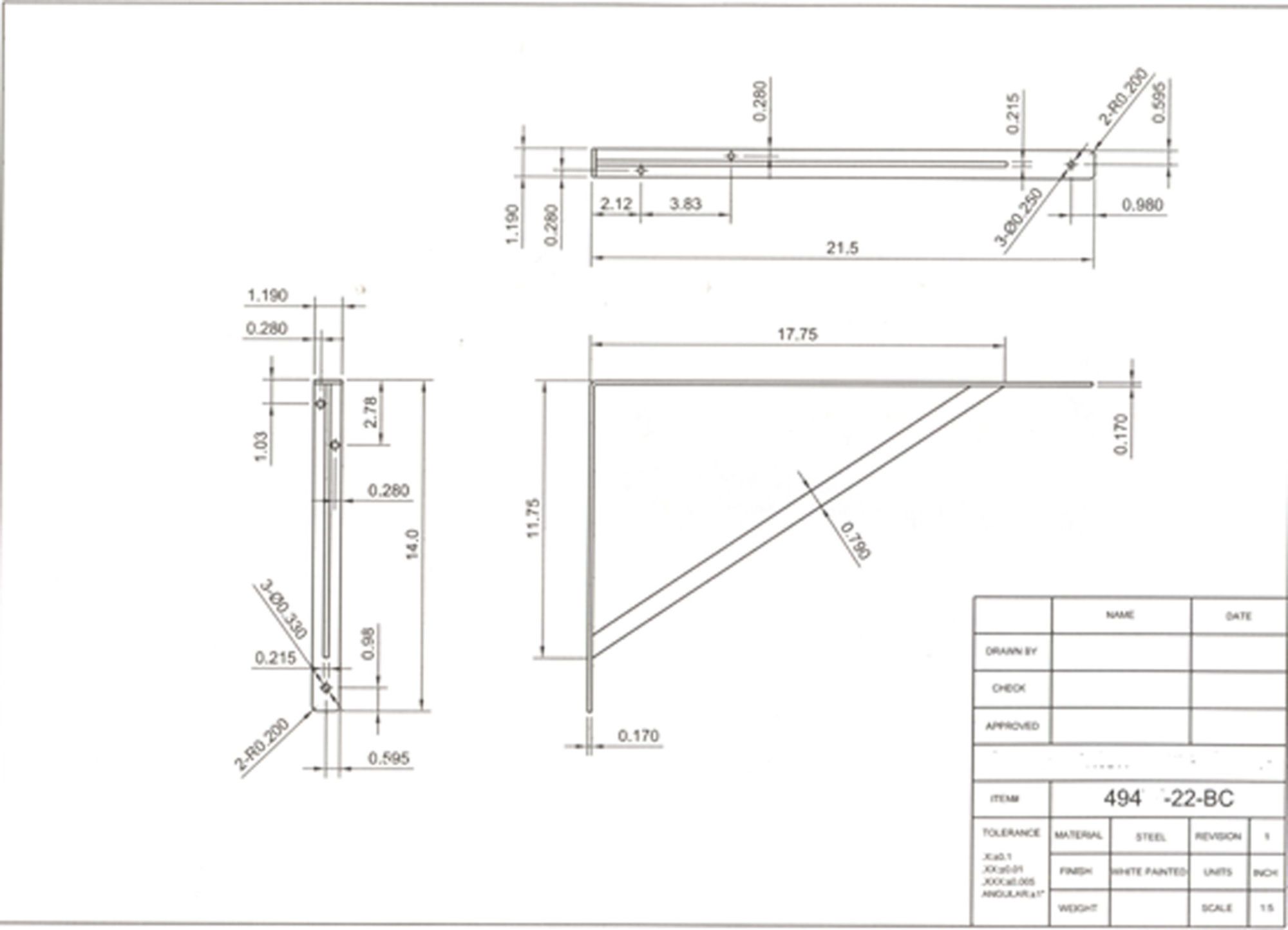 Heavy-Duty Shelf Bracket - White - 22" x 14 1/4" x 1 1/5"
