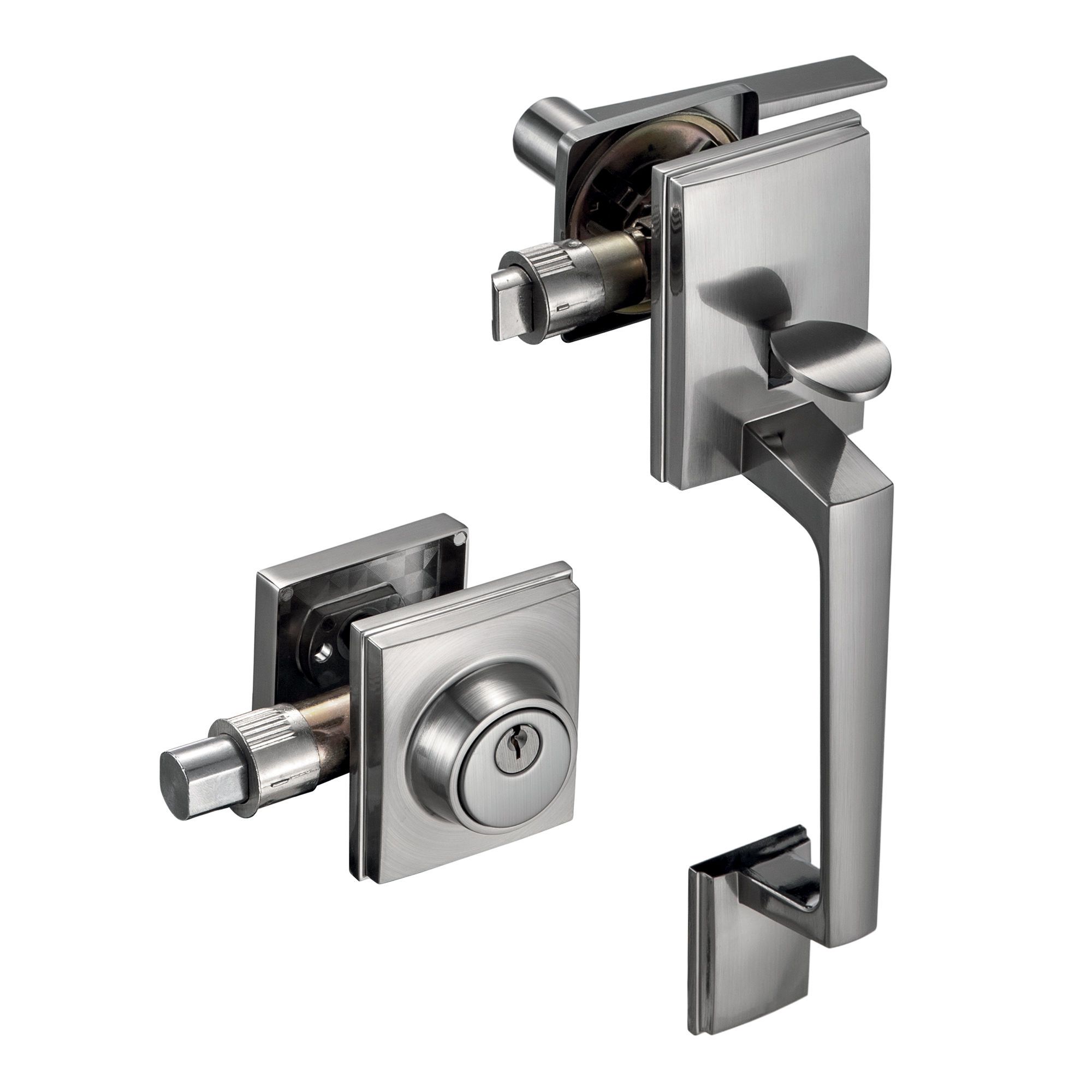 • Satin nickel finish coordinates with exterior hardware