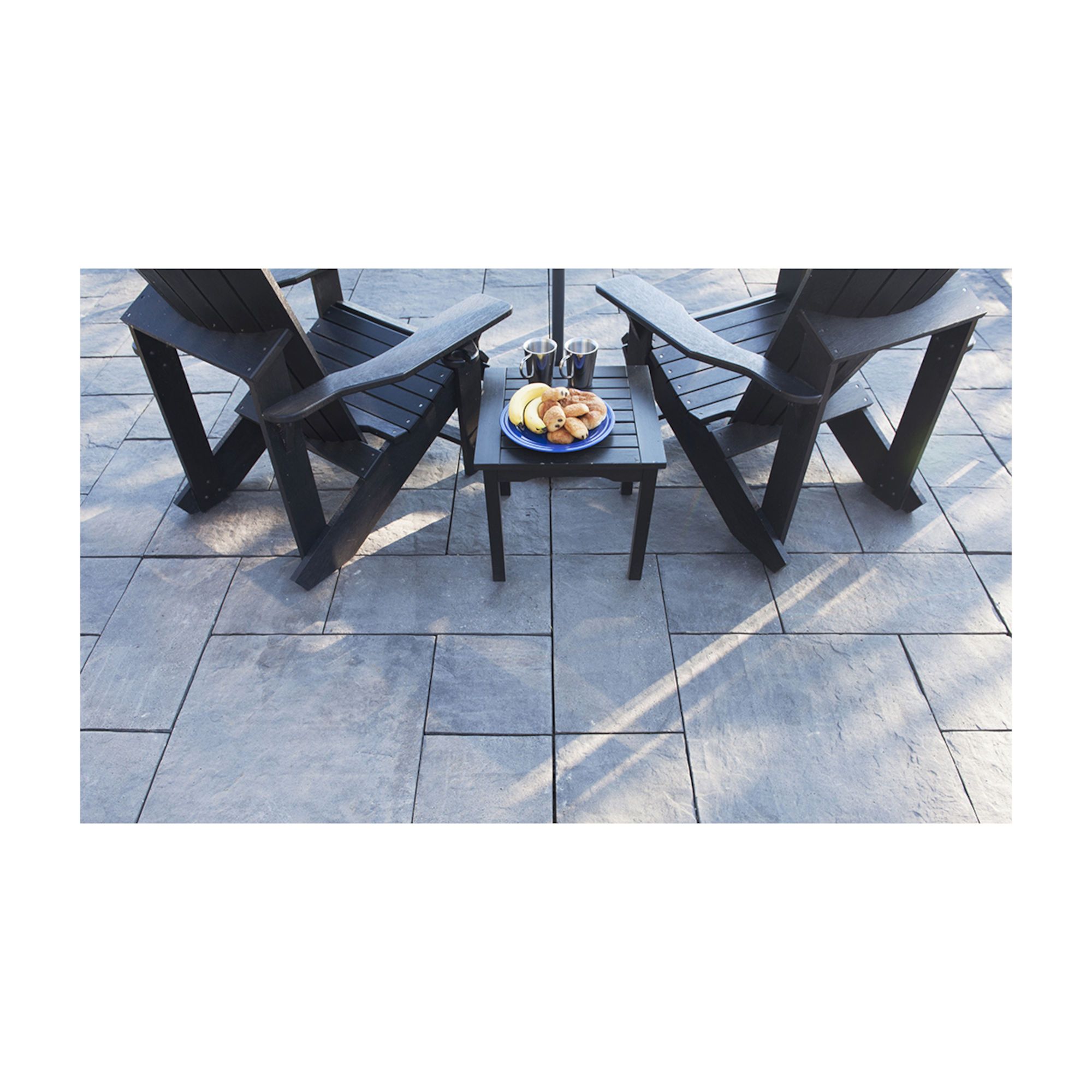 Patio Drummond has found a way to reproduce the texture and the colour of slate with a special concrete mix. The Slate slabs are easy to install and come in 3 sizes that will allow you to do a uniform design or mix them up to better match your hardscape.
