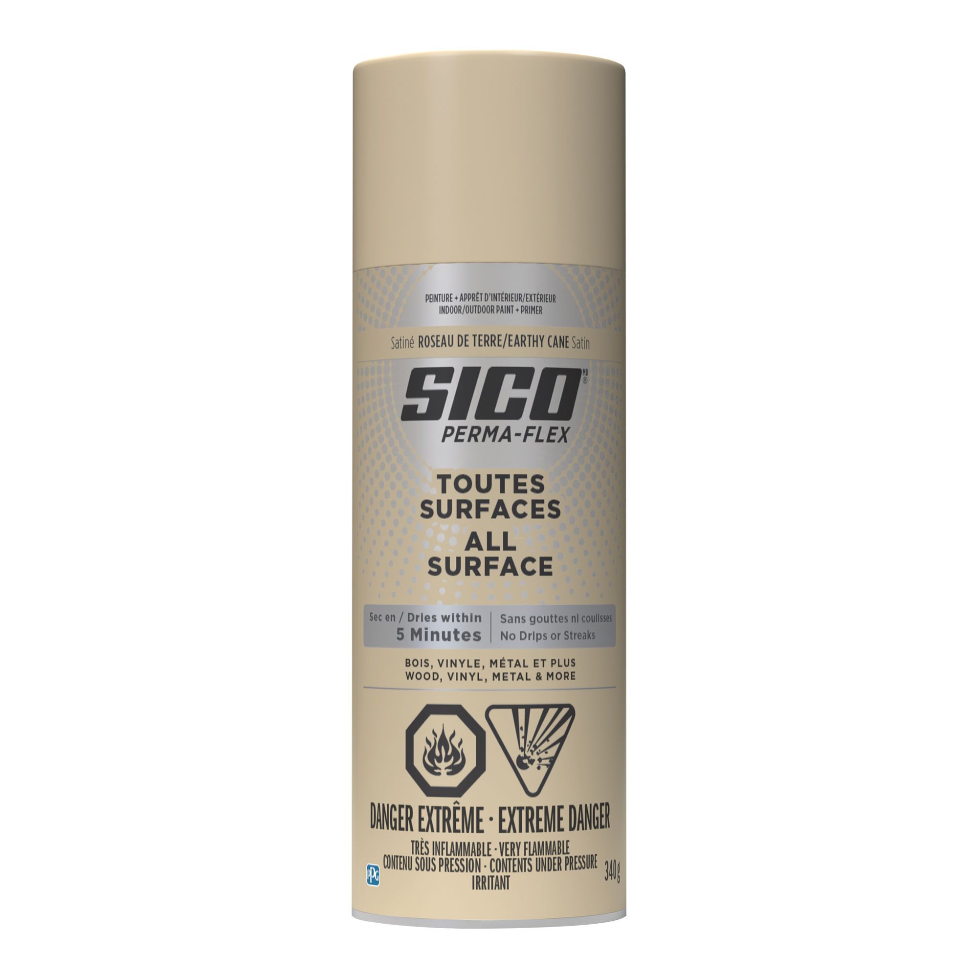 The spray paint combines paint and primer in one all-purpose formula for both indoor and outdoor use. Designed to adhere effectively to wood, metal, vinyl, and plastic, it delivers smooth, even coverage without drips or streaks. Its Satin Earthy Cane finish offers a soft, natural tone ideal for furniture, frames, and decorative items. With a quick ~5-minute drying time, it ensures consistent, clean, and lasting results across a wide range of surfaces, simplifying every painting project.