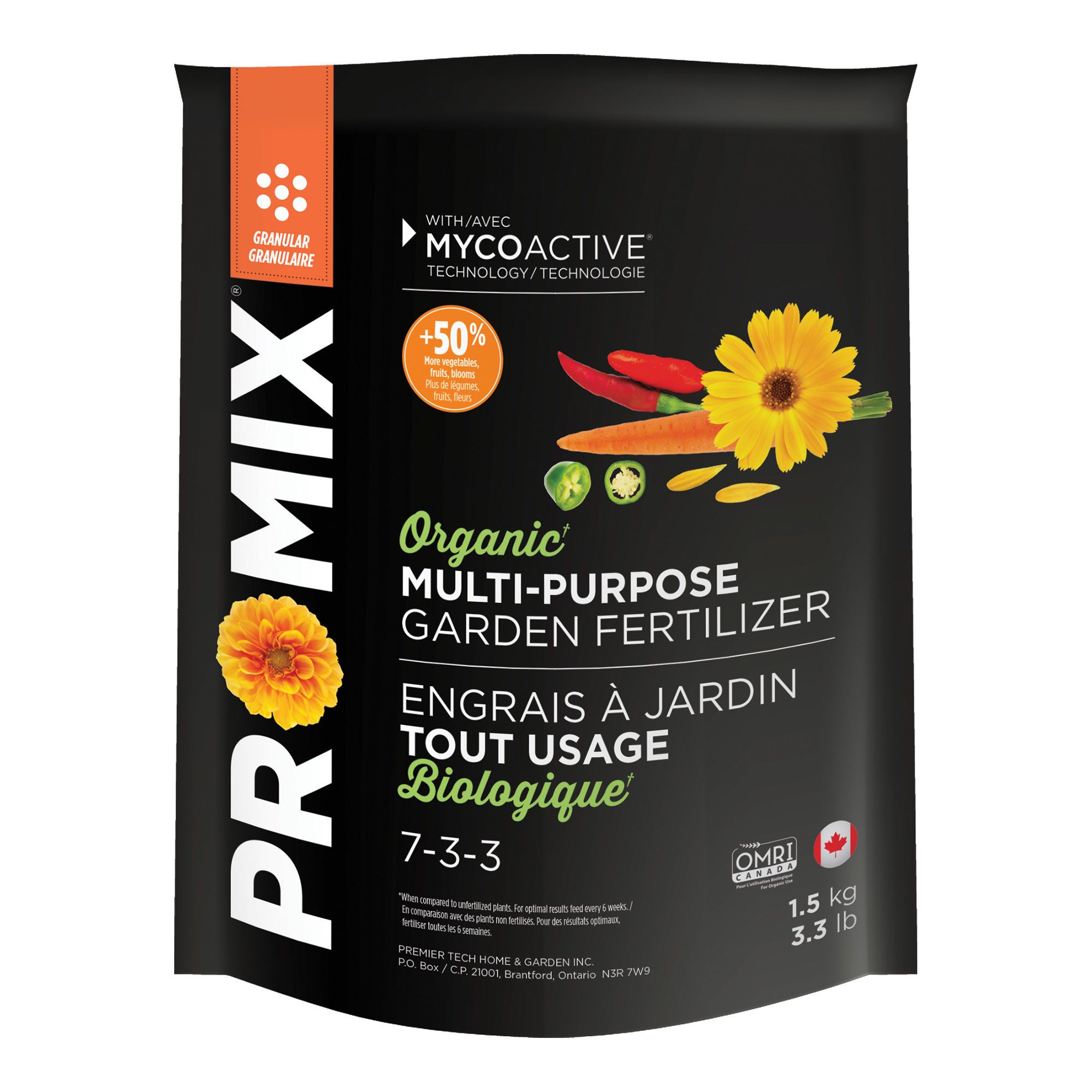 • With mycoactive for 70% more vegetables and fruits, 50% bigger plants and 50% larger blooms
