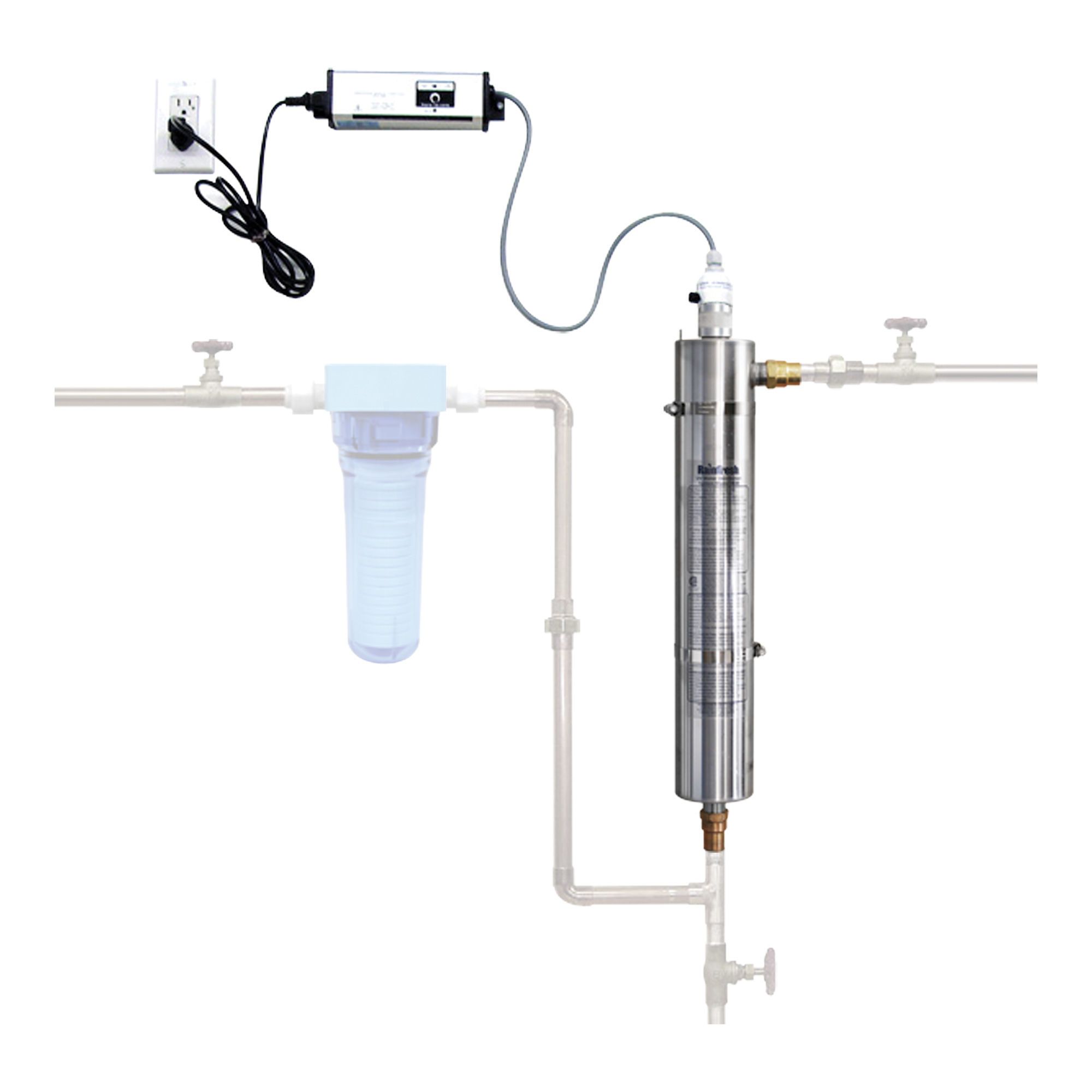 Whole house ultraviolet (UV) water disinfection system.