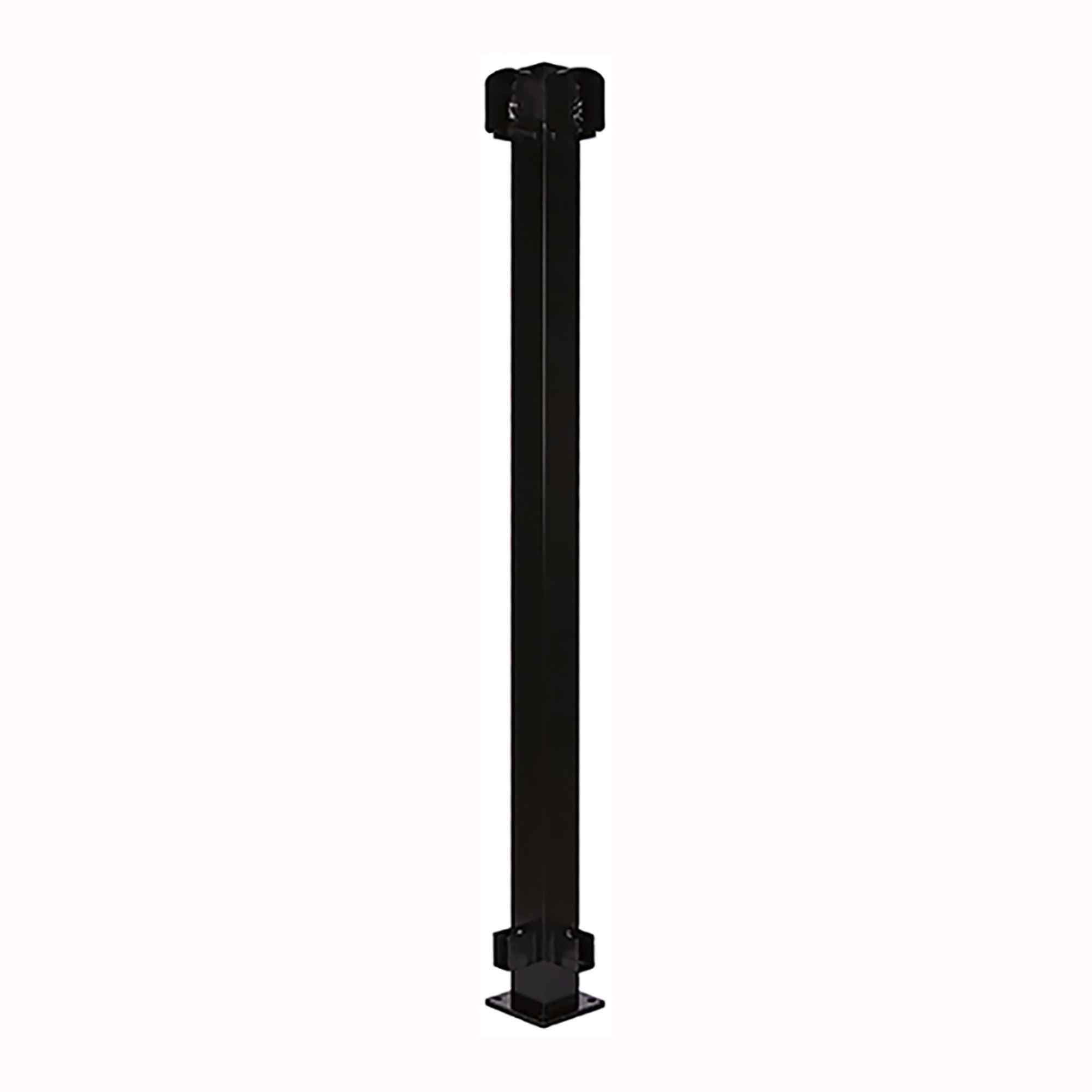 • Post is 2 to 1/4 in square complete with standard post cap and screwed on 1/4 in thick 4 x 4 in base plate