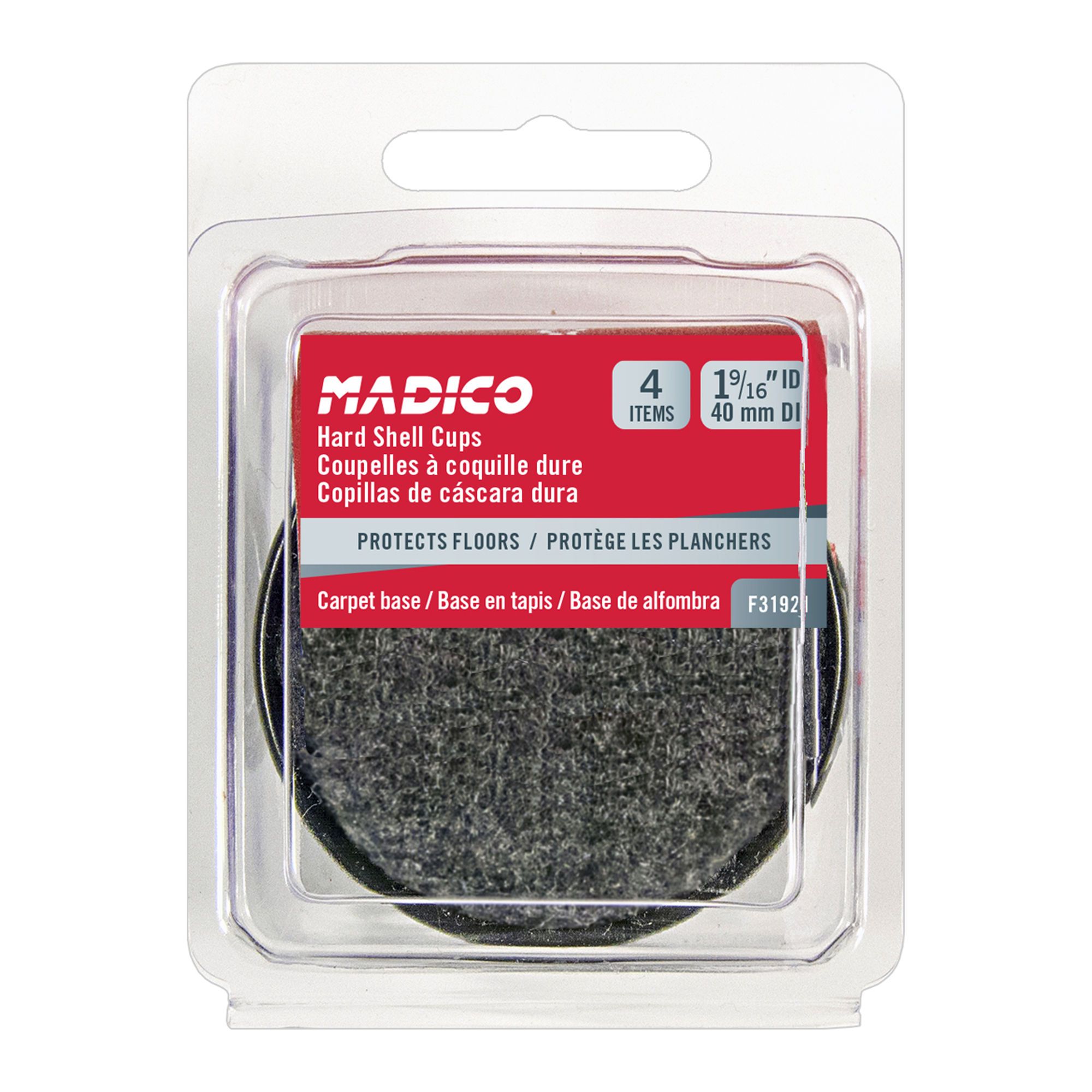 Carpet Base and Metal Round Shell Cups - Gray - 2 1/2" - 4/Pkg