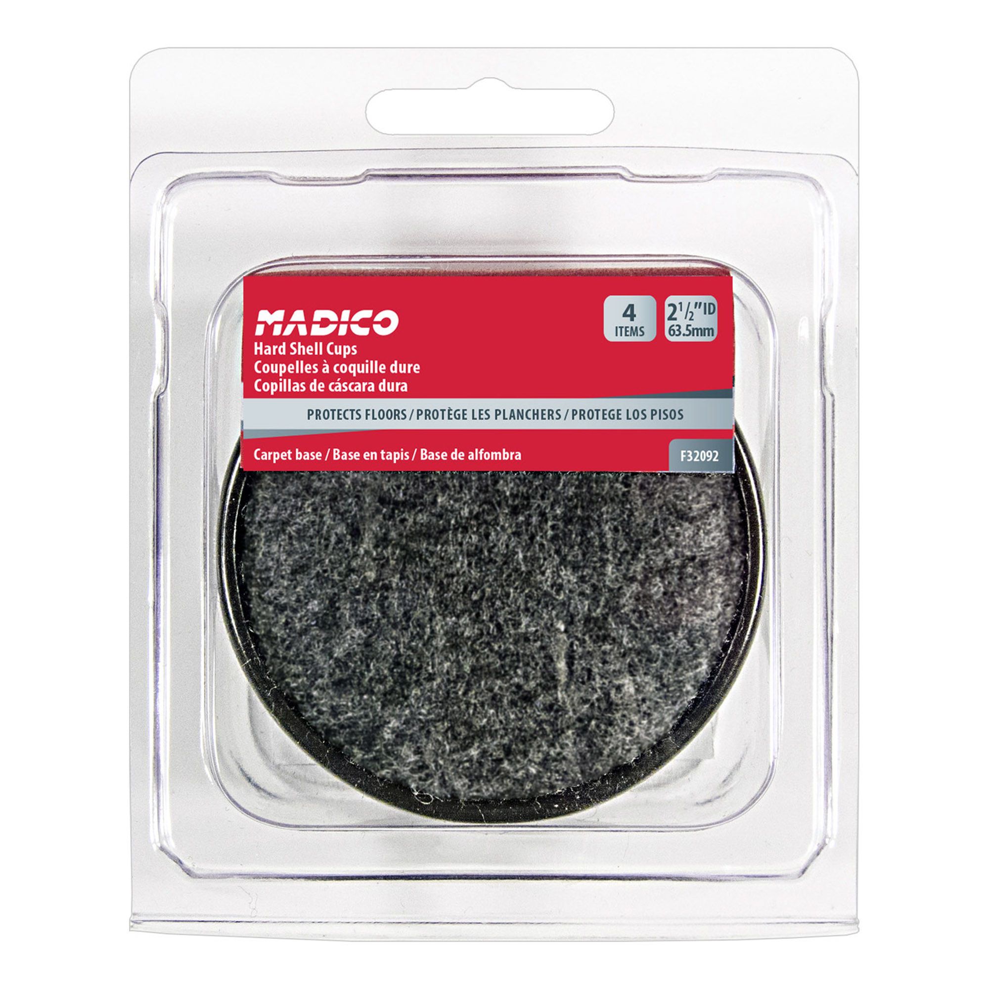 Carpet Base and Metal Round Shell Cups - Gray - 3" - 4/Pkg