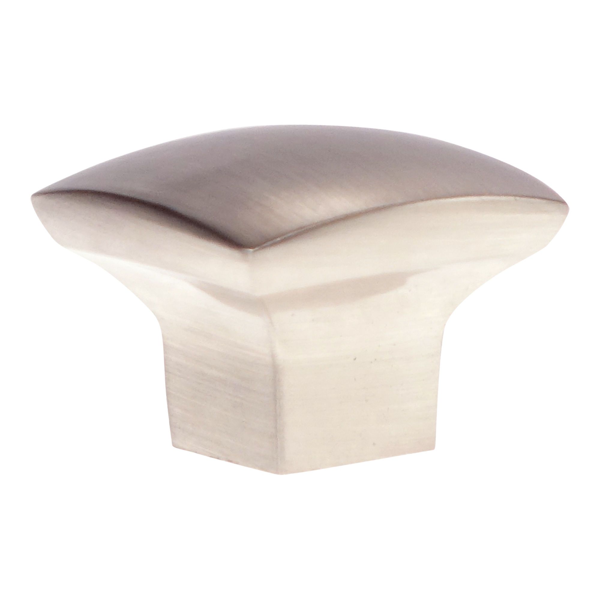 Contemporary square metal knob by Richelieu with a square base. Perfect for furniture and cabinets with clean and simple lines; the head of this square knob has a smooth, slightly convex crown.