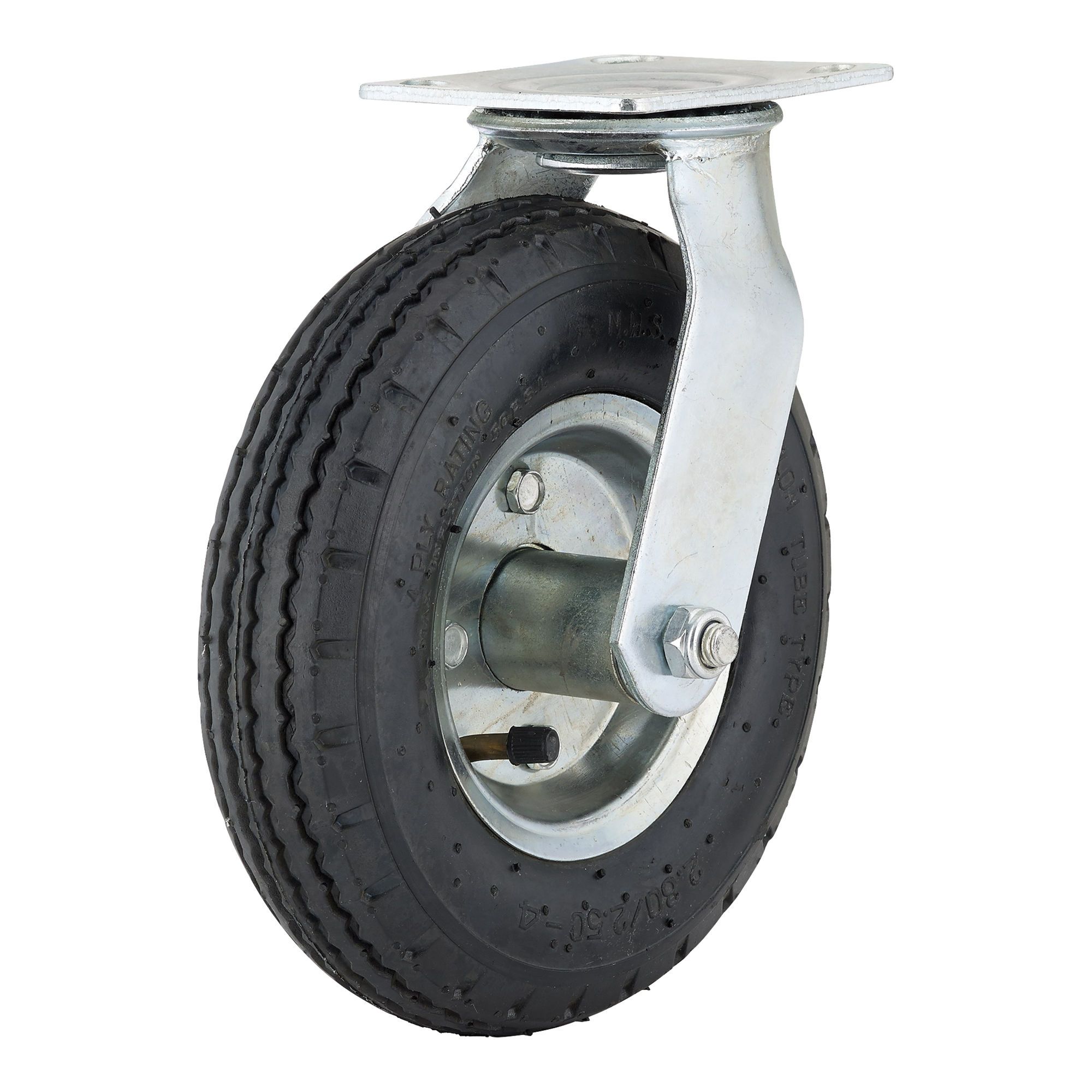 Industrial pneumatic casters. Absorbs shocks and vibration. Suitable for concrete, wood, asphalt, and gravel. Moves delicate loads smoothly and safely over rough surfaces.