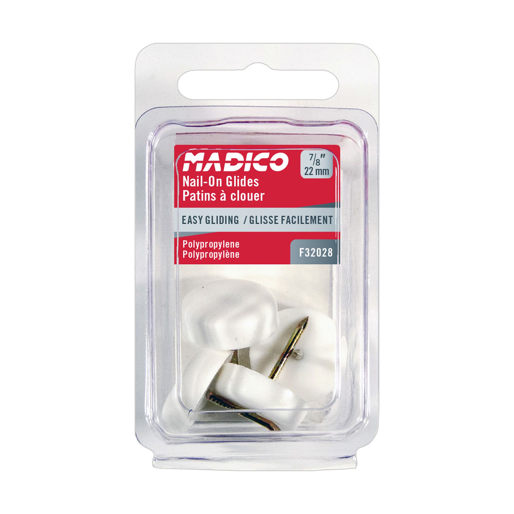 Nail-On Glides with Polypropylene Base - White - 7/8" - 4/Pkg