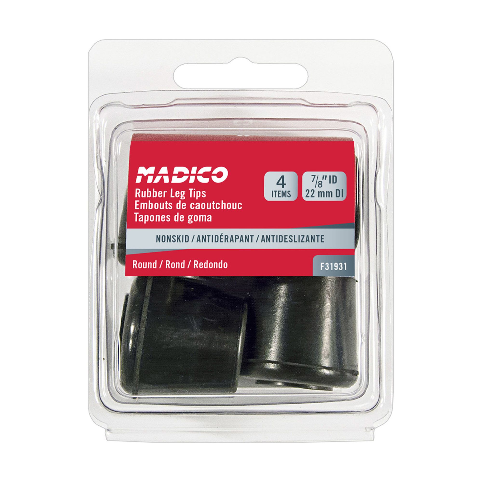 Rubber leg tip - Black - 7/8" - 4/Pkg