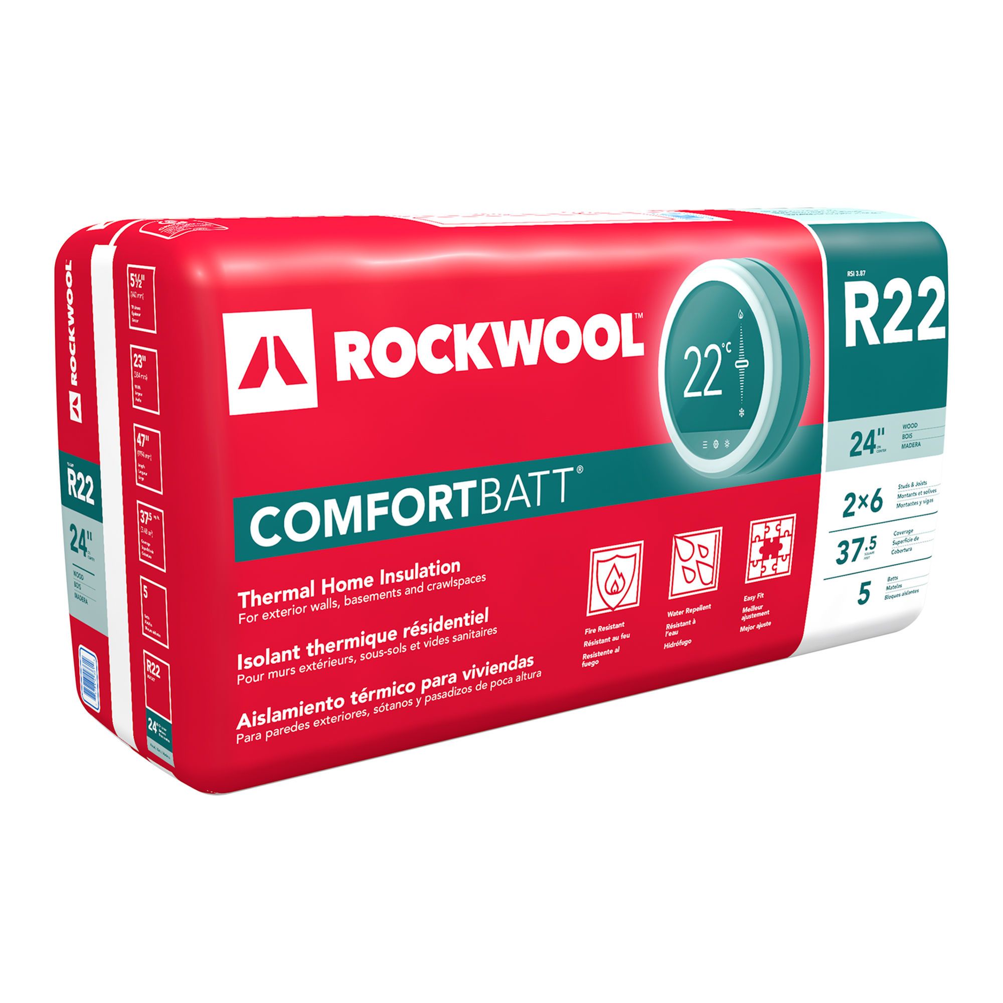 Adapted for wood structures, ComfortBatt thermal insulation is designed for interior application, ensuring optimal thermal and acoustic protection. Composed of rock wool, this insulation is fire-resistant and water-resistant, offering enhanced safety in the event of a fire up to temperatures of 2150°F (1177°C). Non-combustible and free from toxic smoke emissions, it effectively reduces heat loss in buildings. Composed of semi-rigid mats, it is easy to cut, and is ideal for renovation or construction projects.