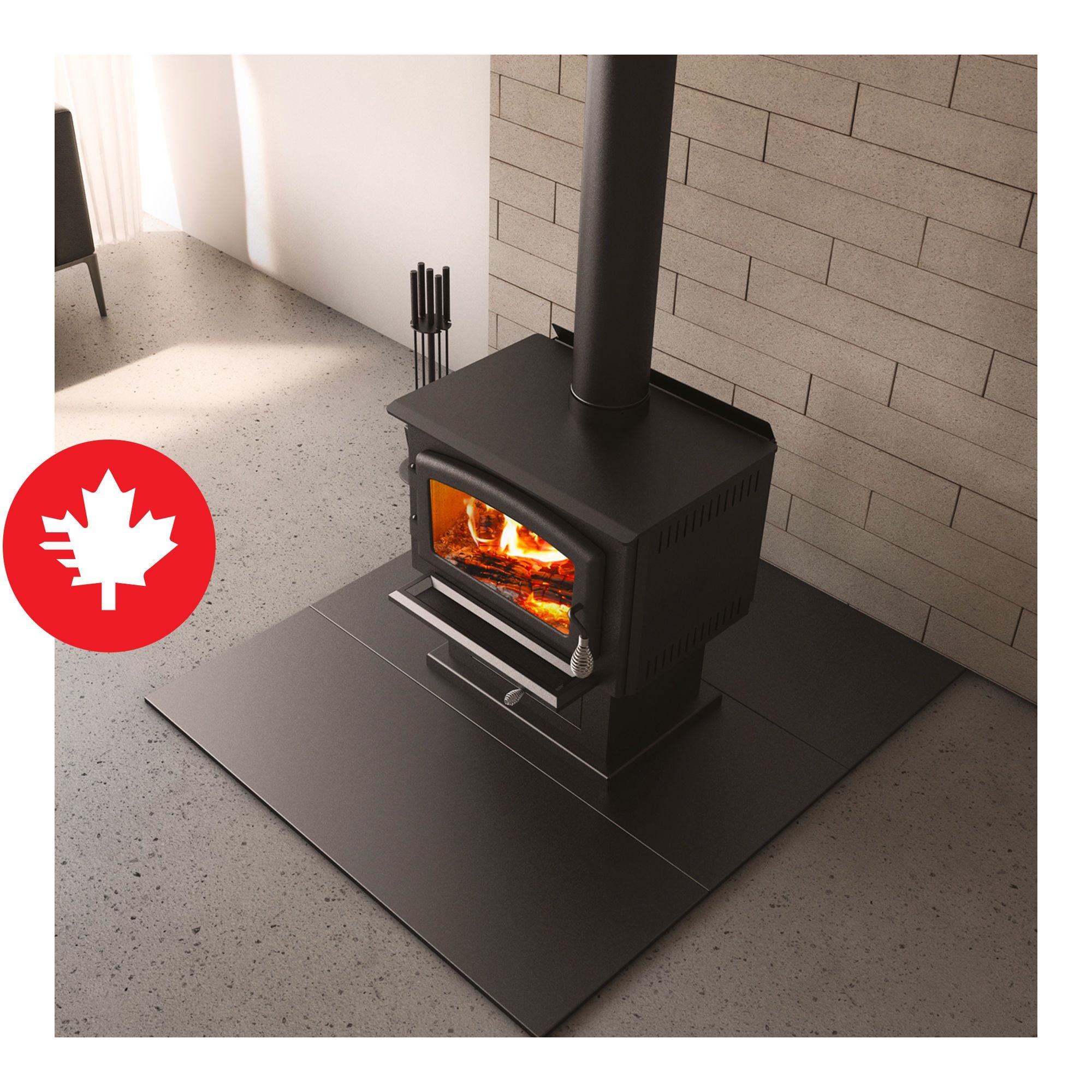 Get simple and effective floor protection for self-supporting wood or pellet stoves with this system.