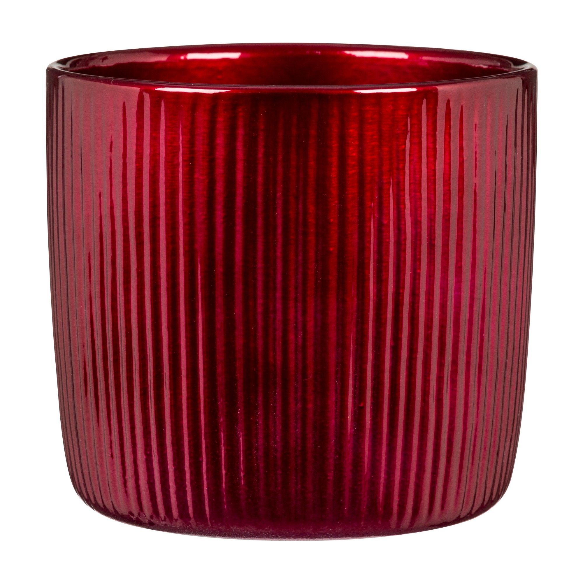 Ceramic Cover Pot - Bordeaux - 13 cm Scheurich ceramic pot cover, model 909 with vertical lines, Christmas collection Bordeaux color, 100% waterproof.