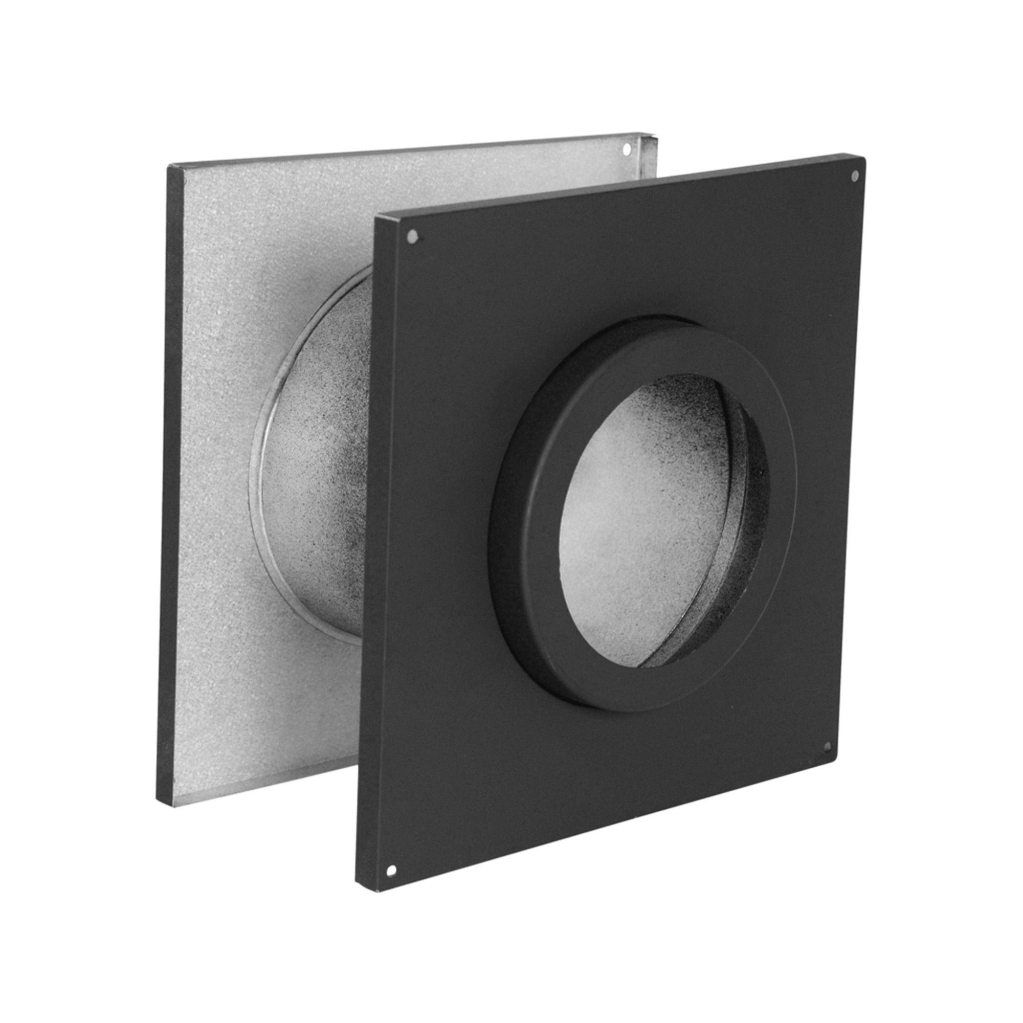 This galvanized wall thimble is an important component for pellet stove chimneys. It insulates between the pipe and the wall to protect any material from high temperature and risk of fire.