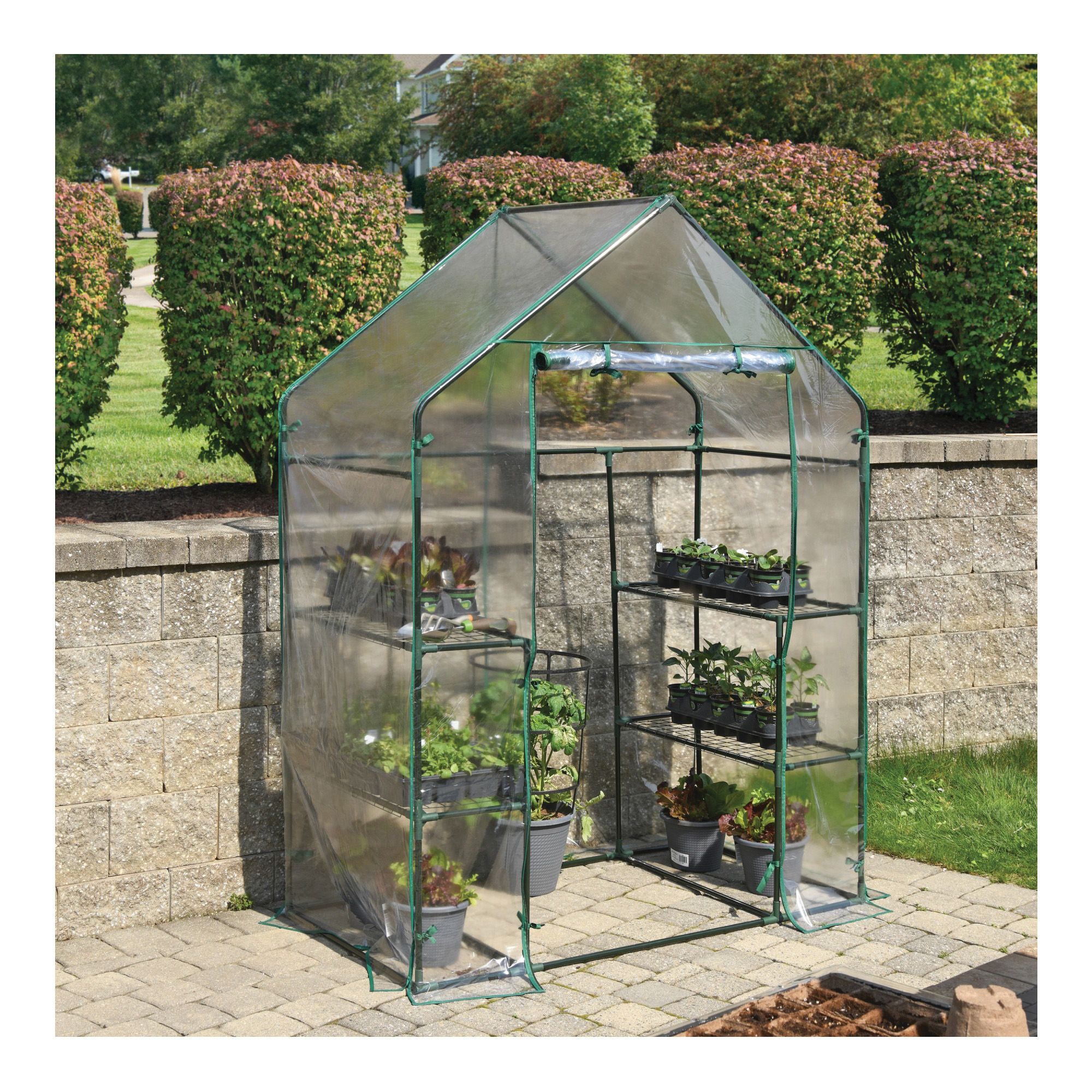 Start seedlings early or extend your growing season late with the Grow IT Small Greenhouse. This easy-to-assemble, compact greenhouse is constructed with a high-grade tubular steel frame. The clear PVC cover allows the maximum amount of light to reach the plants, even in cooler months. The cover protects young seedlings in the early Spring and Late Fall weather.
