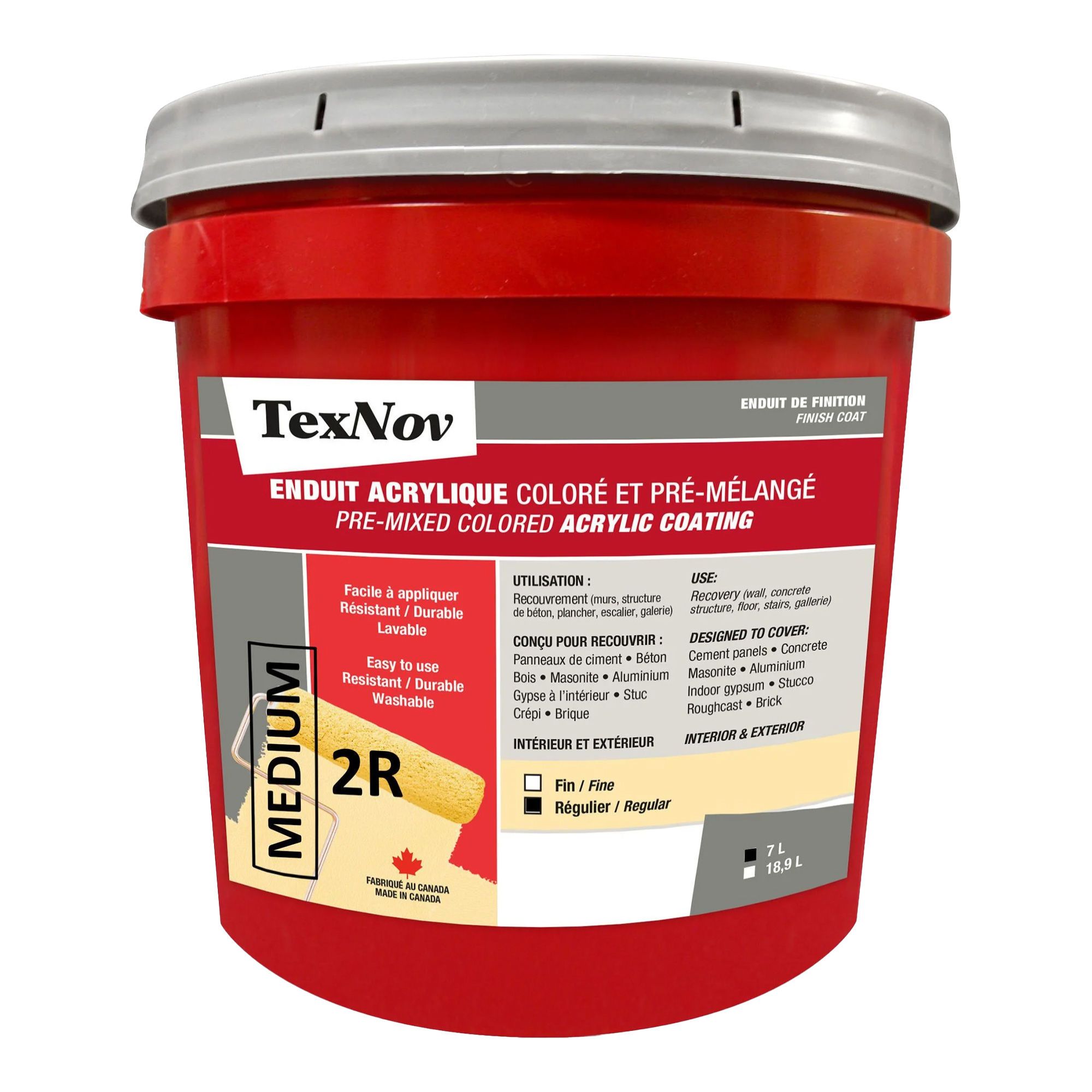 • Can be applied over cement, wood, drywall panels, stucco and masonite