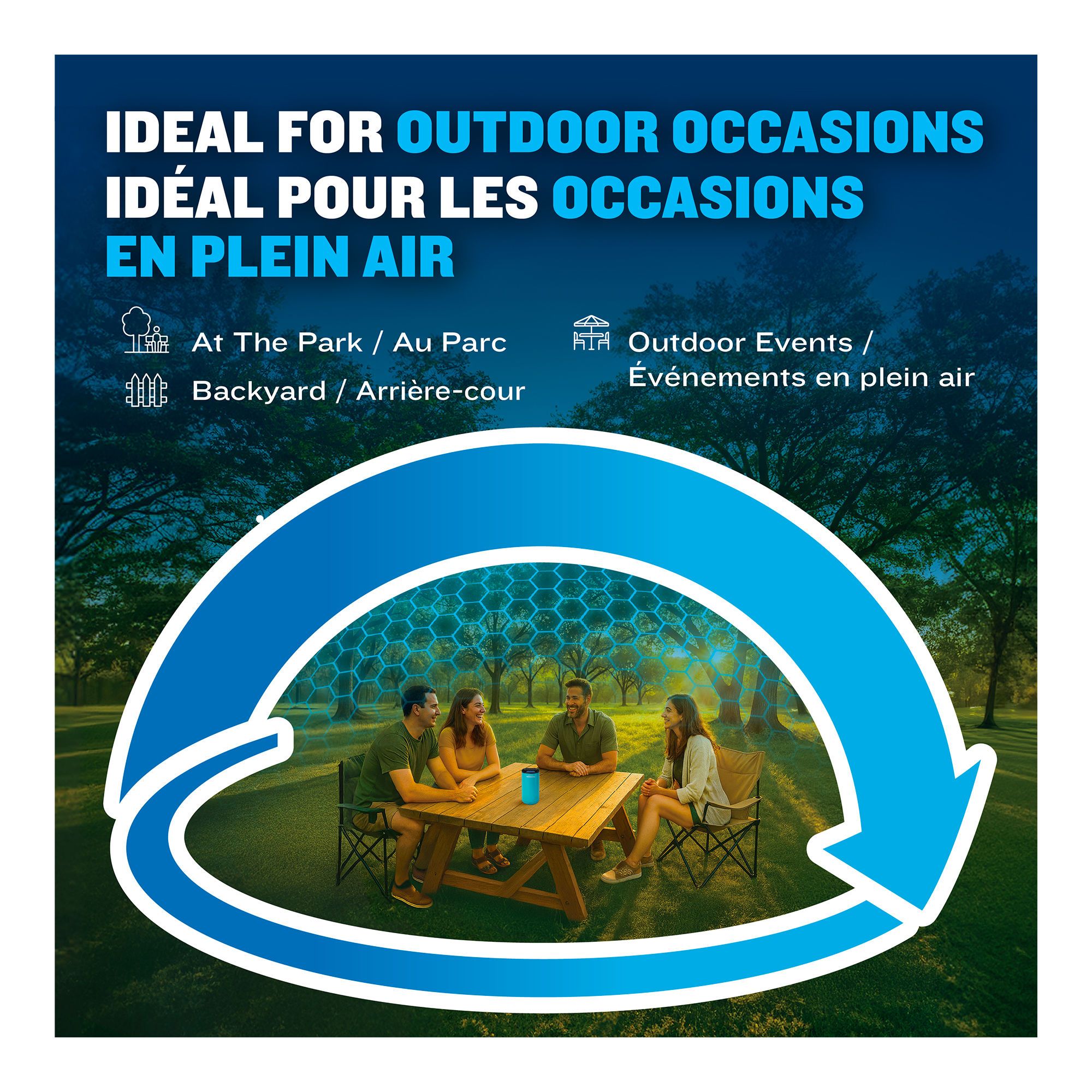 • Mitigate the inconvenience for a period of up to four hours in an area equivalent to that of a medium-sized terrace or patio (up to 4.5 meters from the appliance)