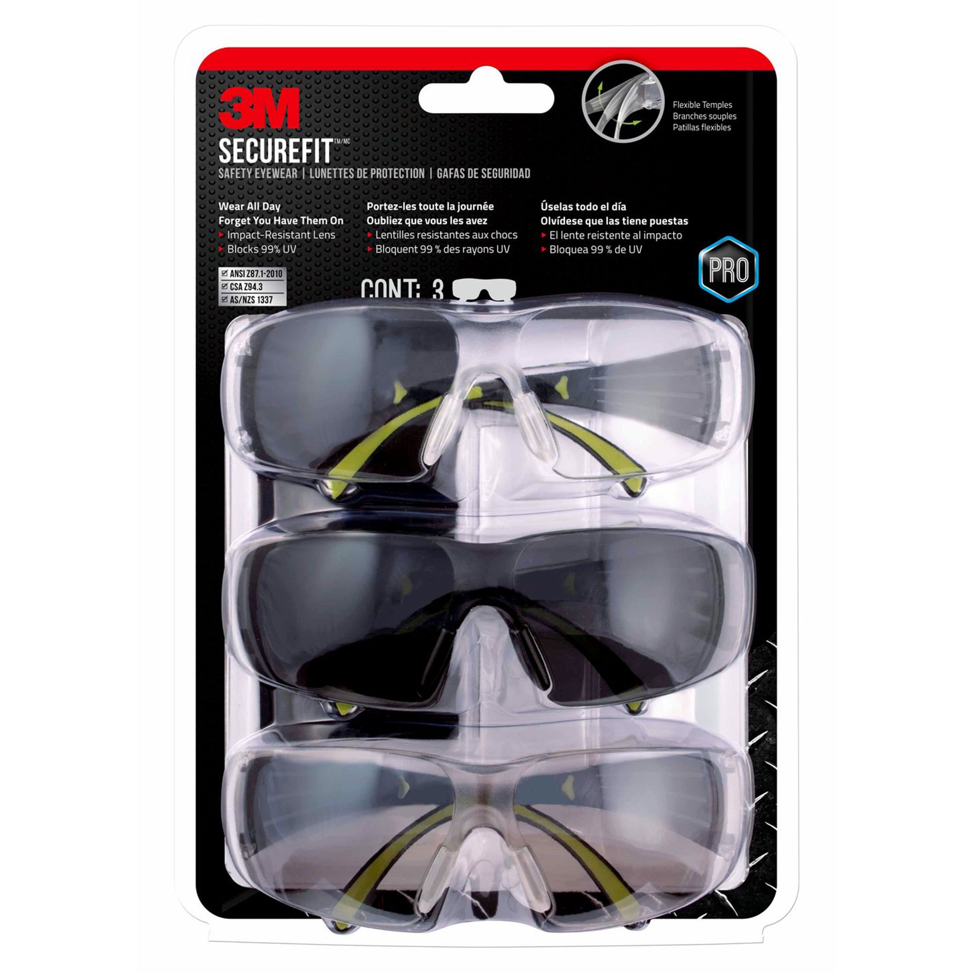 Ensemble de 3 lunettes de protection SecureFit.