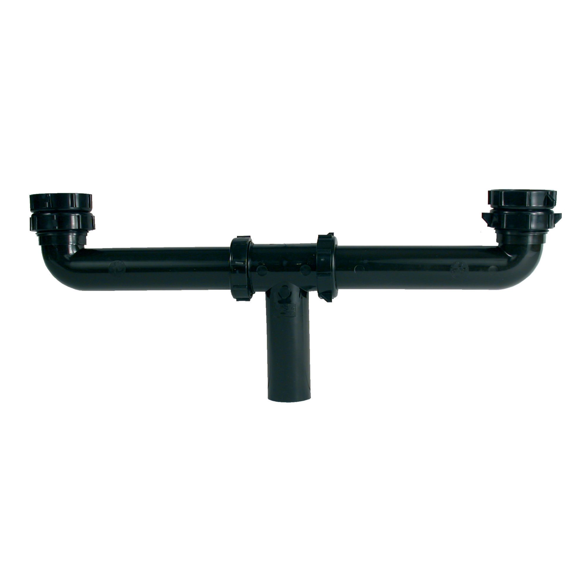 Renvoi central en ABS DWV pour évier double, 1 1/2" x 16’’, noir