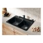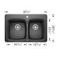 Évier de cuisine, Vienna, 2 cuves, 1 trou, Silgranit, noir charbon, 31" x 20,5" x 8"