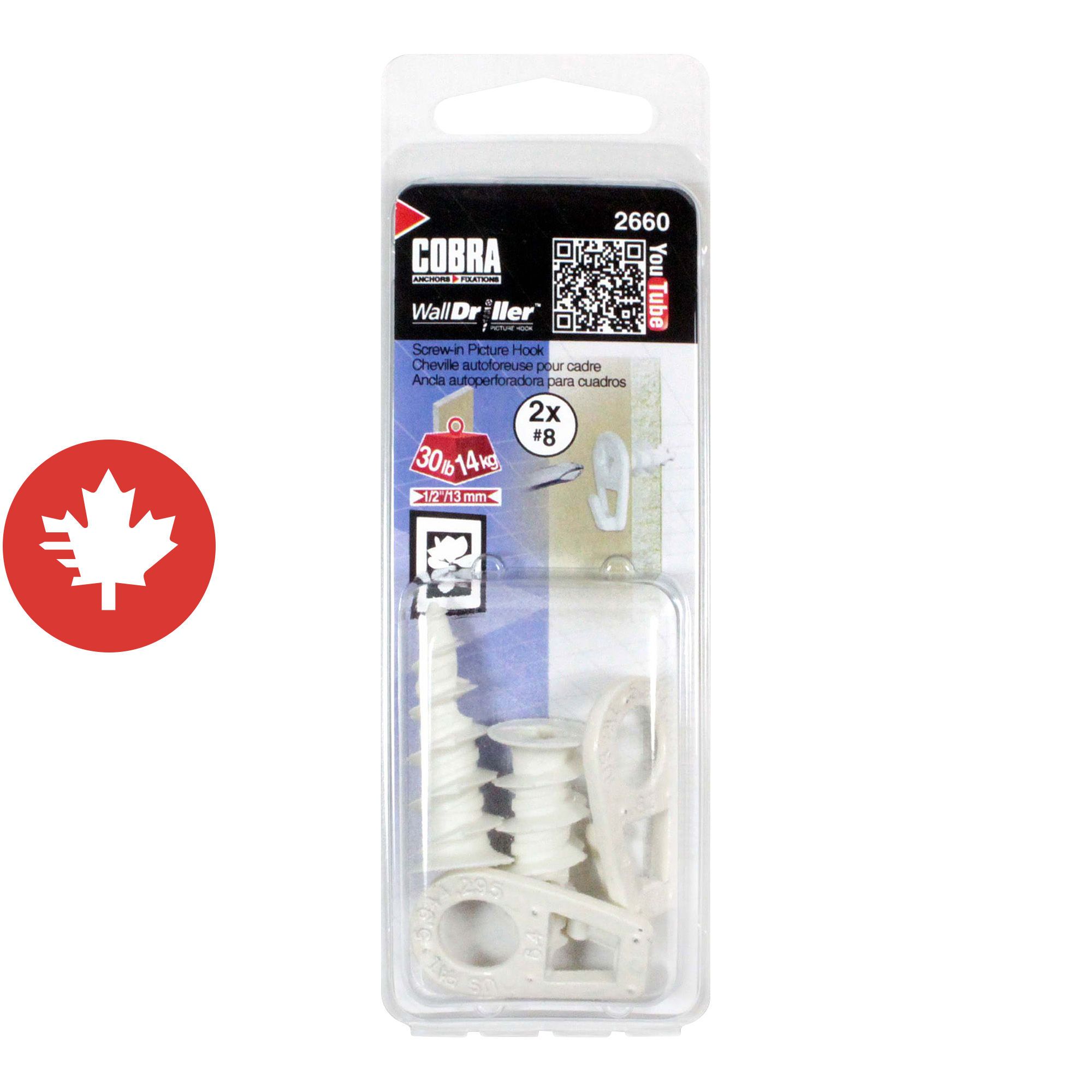 Le WallDriller Picture Hook® est rapide et facile à installer, sans préperçage. Puisque c’est un ancrage autoforeur, le seul outil requis est un tournevis. Il peut être retiré et installé au besoin. Avec sa conception décorative et stylisée, le WallDriller Picture Hook® est parfait pour tous les tableaux et miroirs qui doivent être installés sur du gypse.