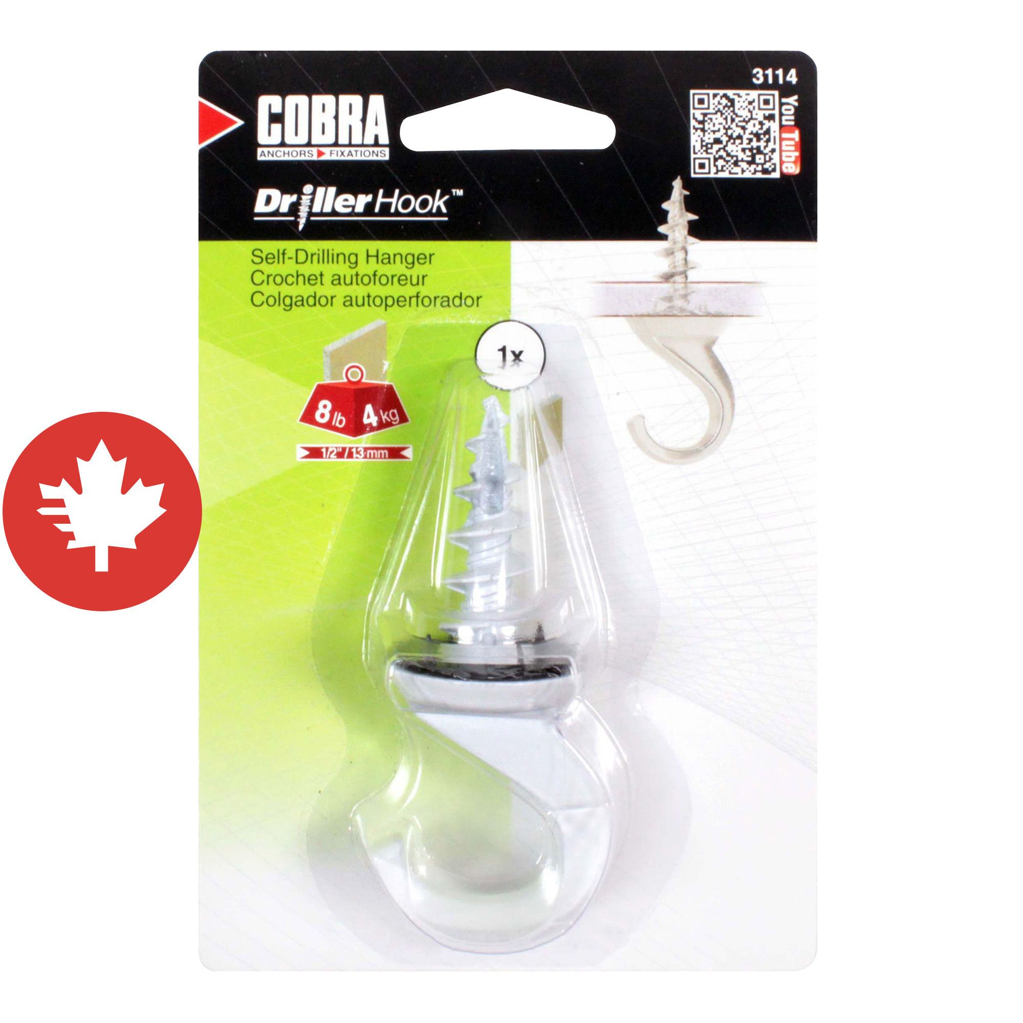 Le DrillerHook™ est le crochet à plantes le plus rapide et facile à installer dans le gypse. Étant un ancrage autoforeur, aucun préperçage n’est requis. Il s’installe d’une seule main et peut être enlevé et réinstallé au besoin. Il suffit d’appuyer la pointe dans le gypse puis de visser dans le sens horaire. La rondelle anti-rotation empêche le crochet de se dévisser et le verrouille solidement dans le plafond.