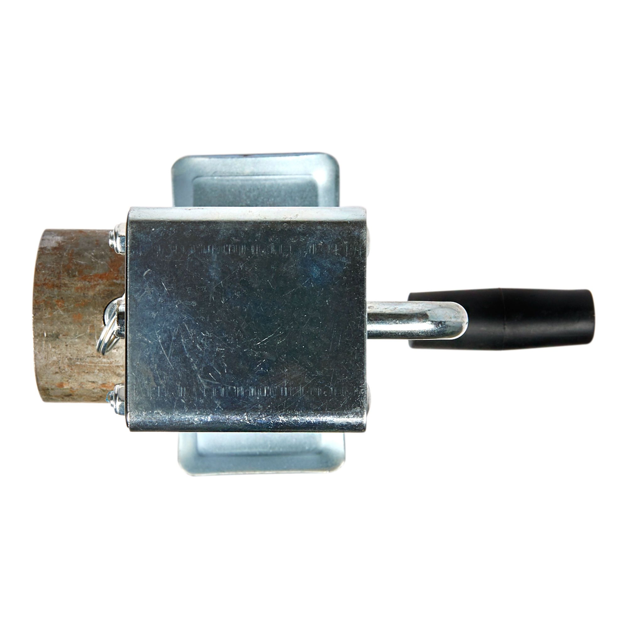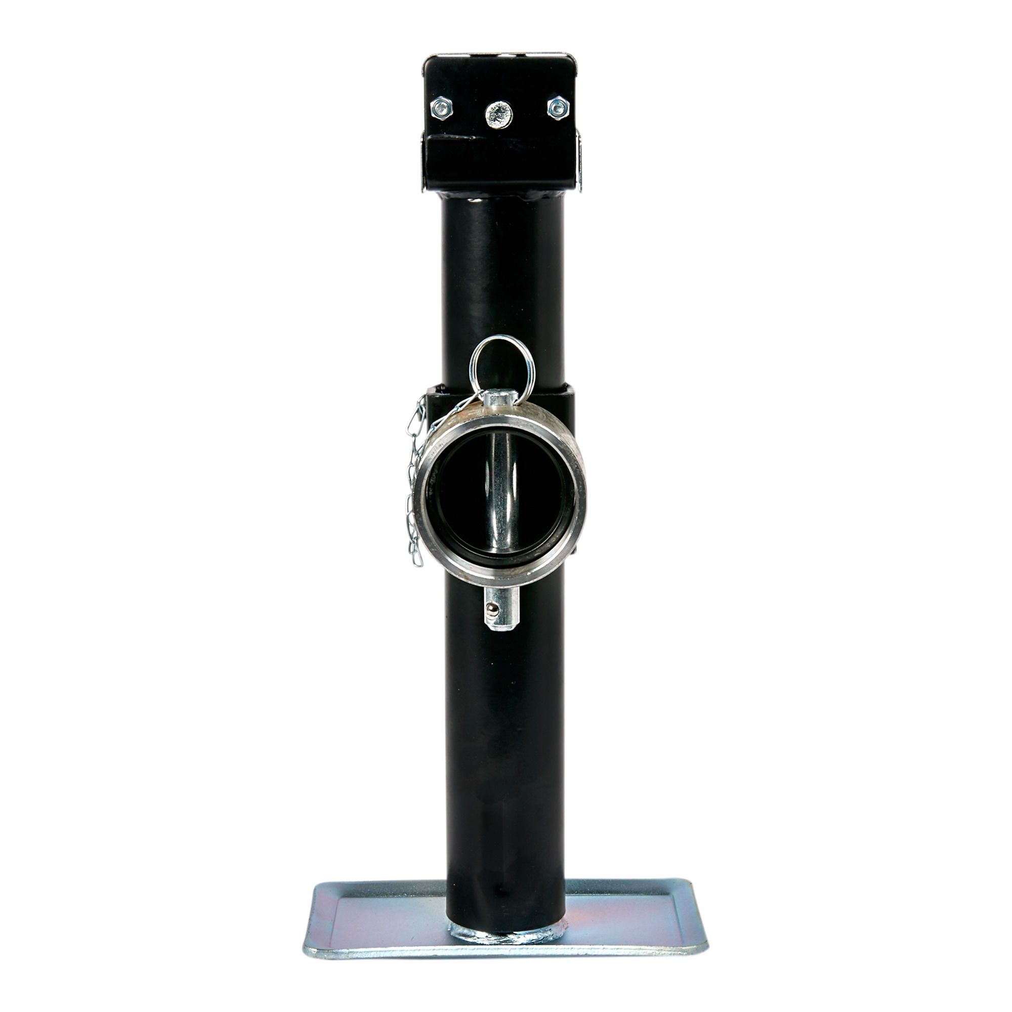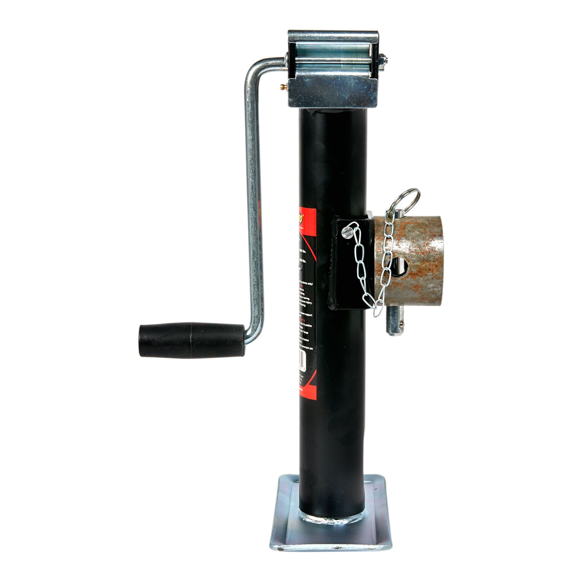 Le cric en tube rond a quatre positions de remontée du tube, goupille d'arrêt, manche, base plate 7 1/2 x 4 po et levier sur le côté.