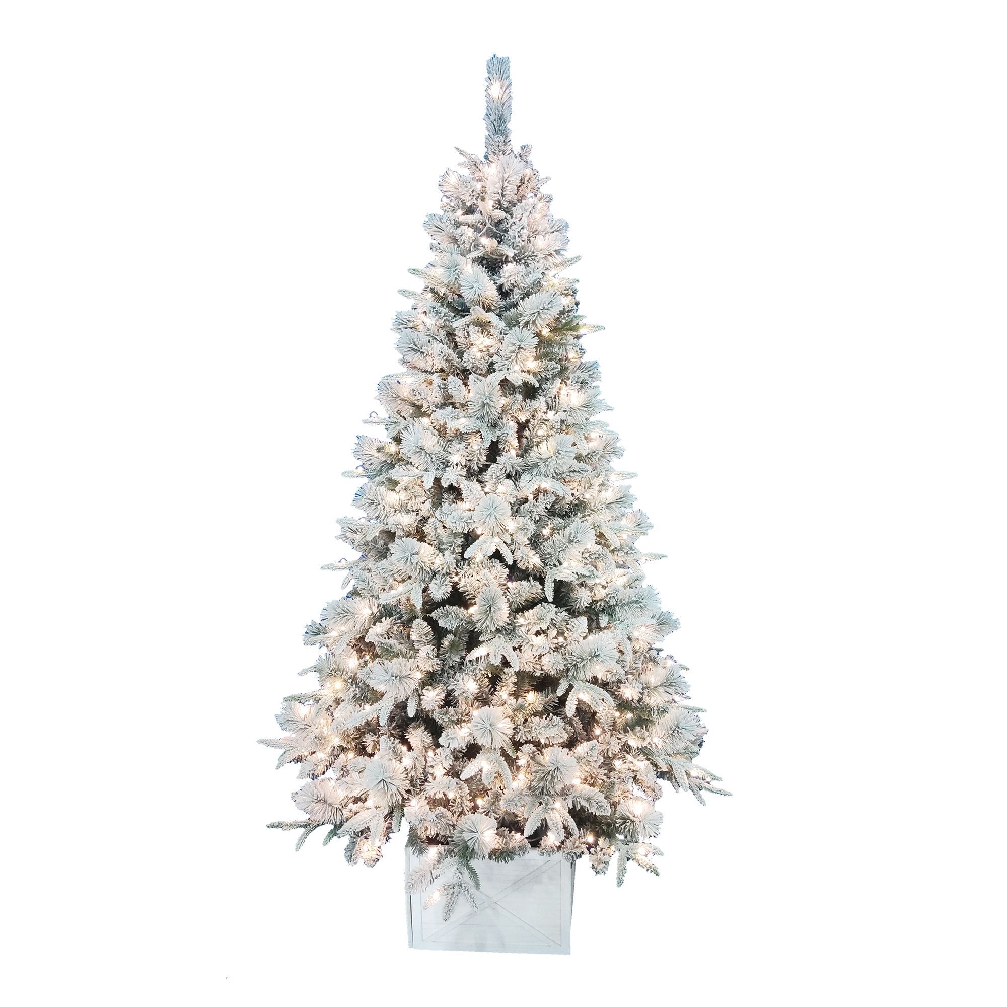 Votre intérieur ne va pas manquer d'illuminations avec cet arbre de Noël enneigé. Mesurant 7.5' (2.29m), il est doté de 1306 pointes qui lui confèrent un aspect dense, pour un diamètre de 46" (116.84 cm). Ses 600 lumières préassemblées multicolores avec 10 fonctions sont parfaites. Le pied en métal assure stabilité et sécurité, avec un couvre-pied en bois pour une touche naturelle.