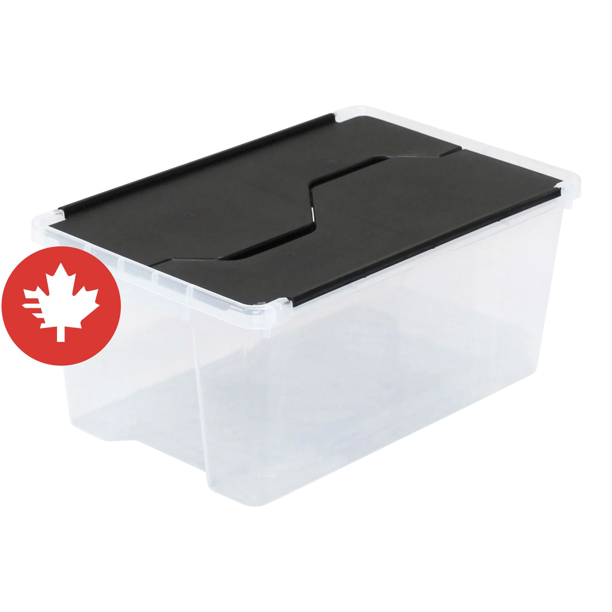 Ce bac de rangement en plastique avec un couvercle noir rabattable vous sera très utile pour votre rangement.